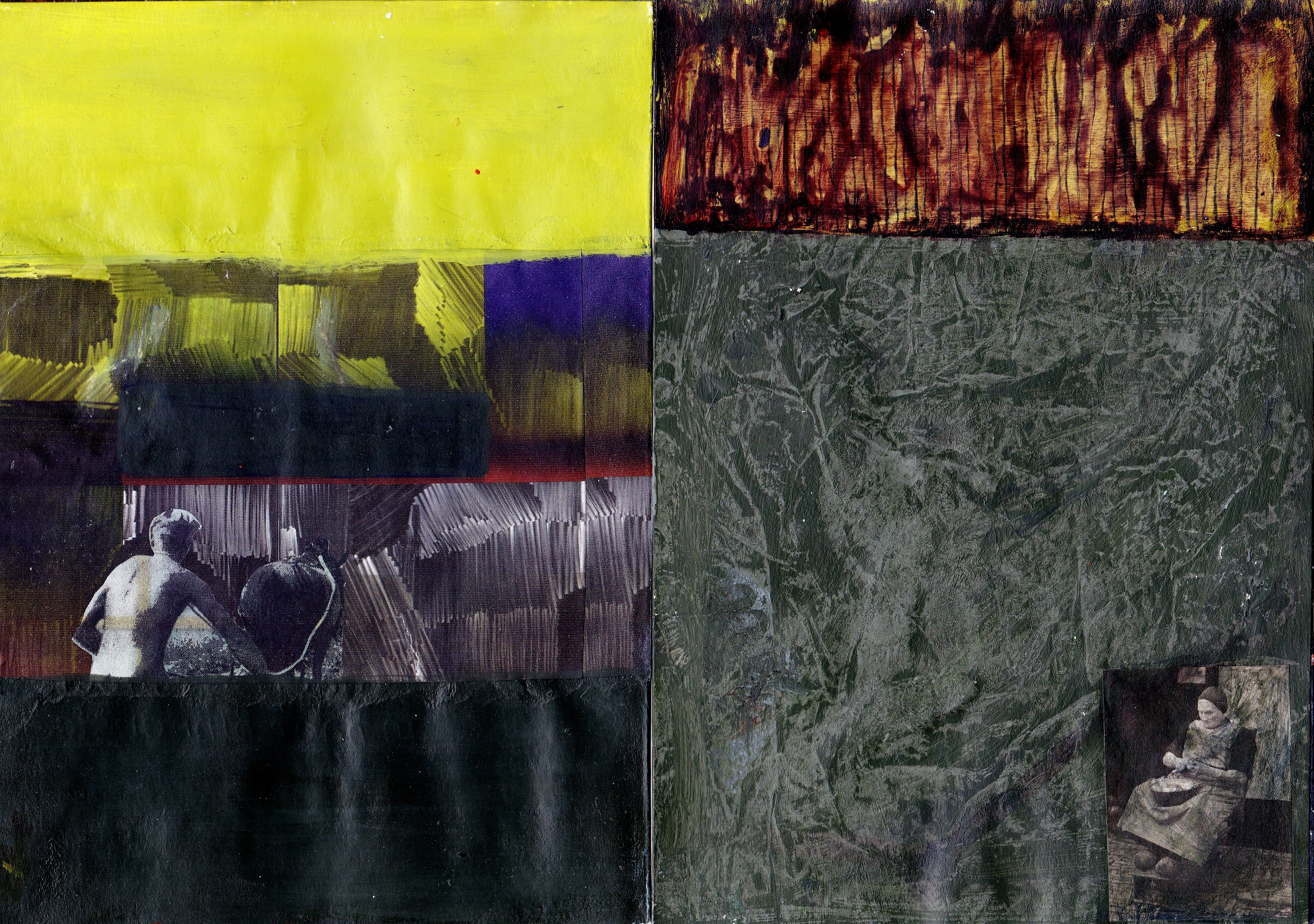 Landschap Polder Boerenland Sompig Vrouw Ploeg Abstraherend Schilderkunst+collage Groen Boer