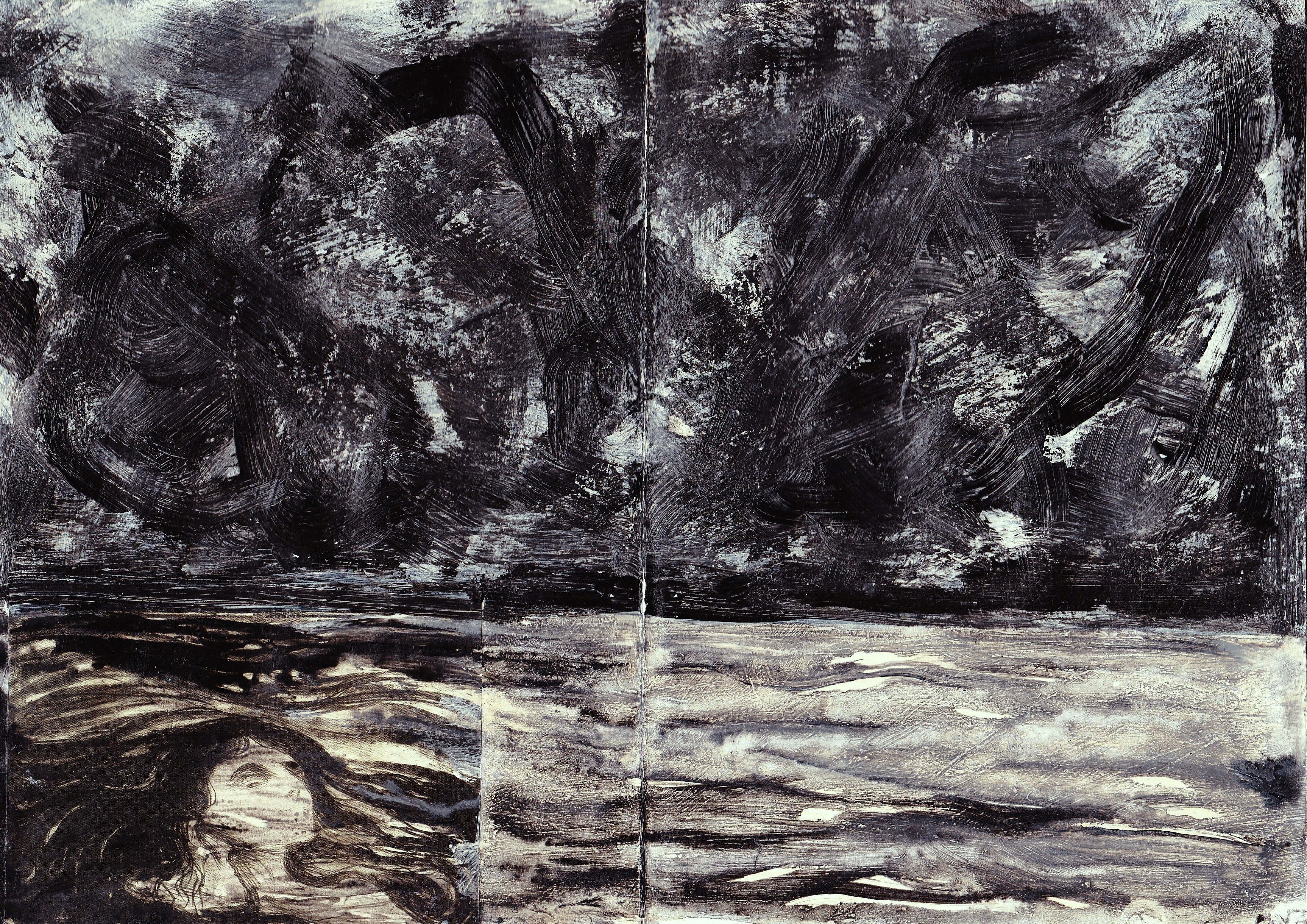 Water Zwart Vrouw Lucht Sompig Schilderkunst Acryl Gem Techniek