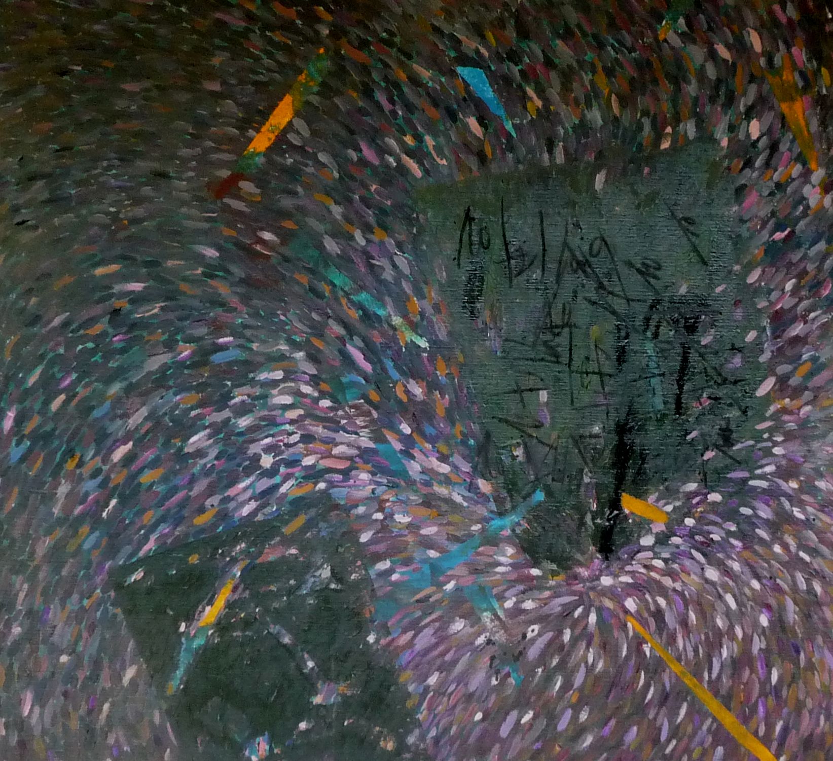 Her painting is about structure, the structure of earth for example, where she zooms in on the detail, the ground under your feet, and she zooms out to the space around us.
