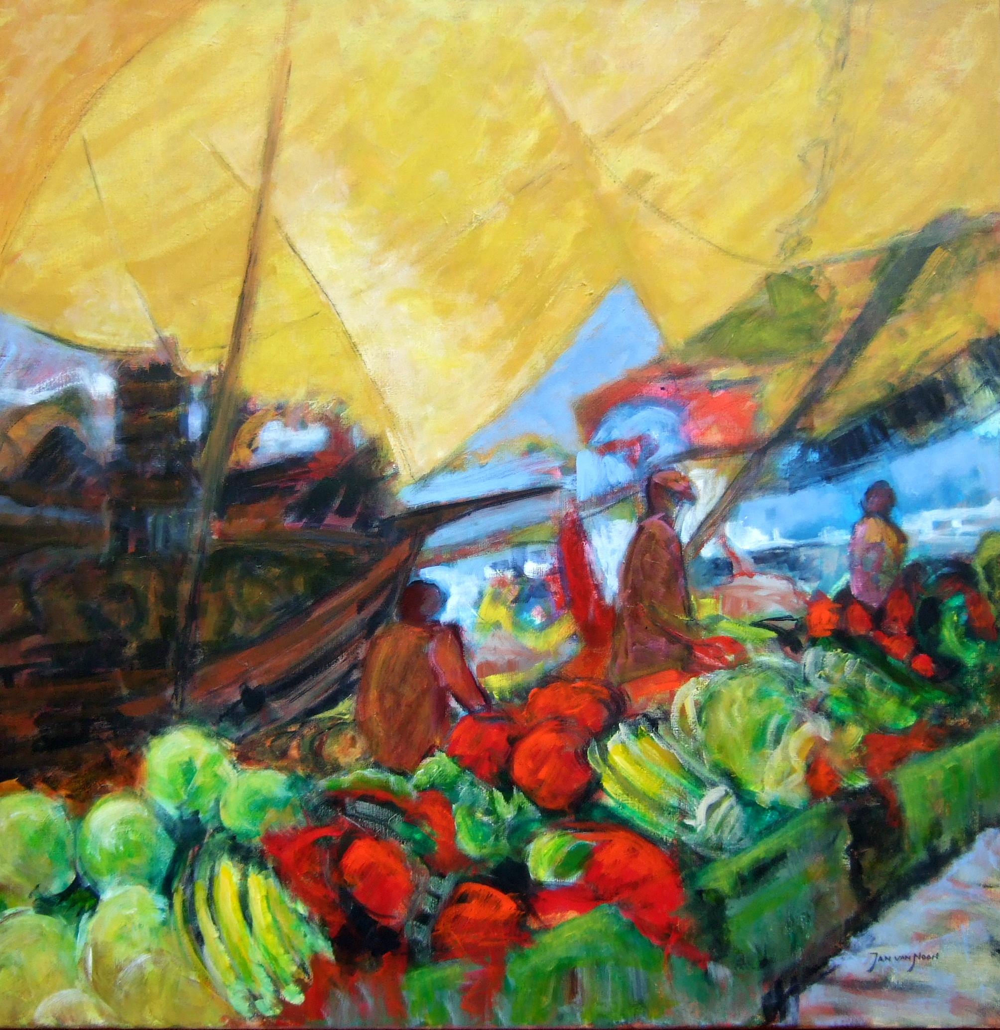Art Painting Kunst Schilderij Fruit Groente Vis Vegetables Colourful Kleurrijk "floating-market"