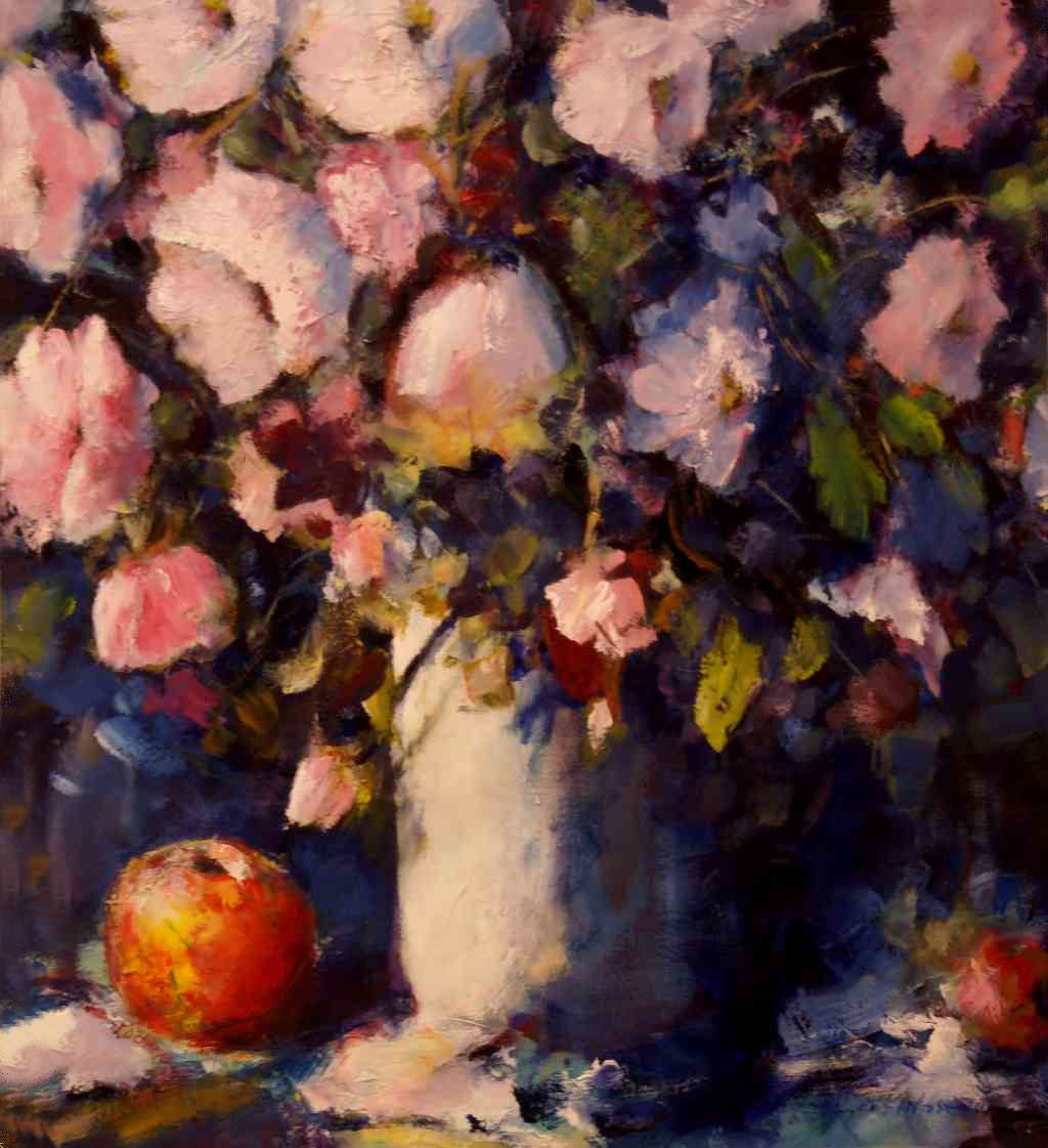 bloemstilleven met appel