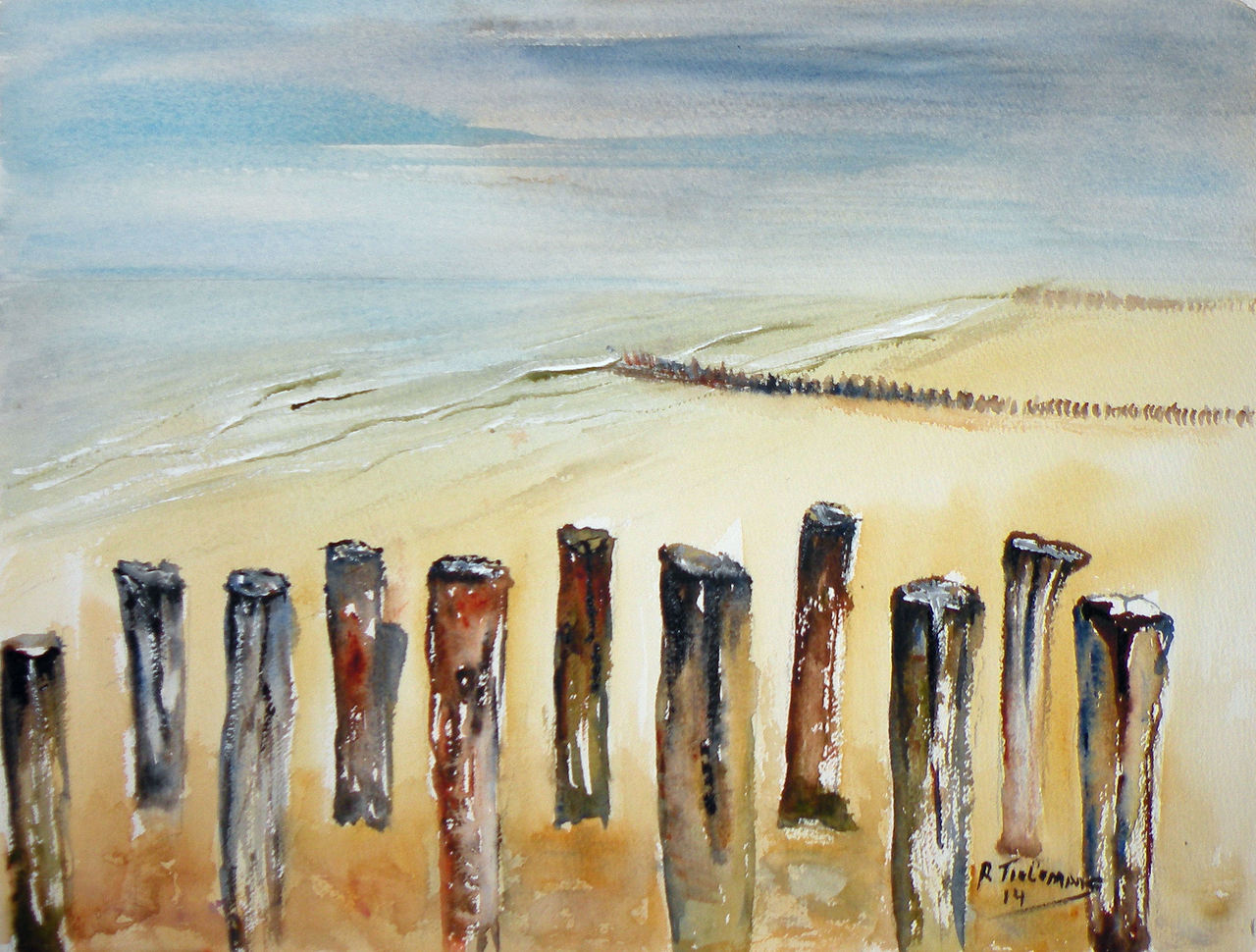 Wit Zee Grijs Geel Blauw Yellow Bruin Blue Water Aquarel White Brown Sea Watercolour Grey