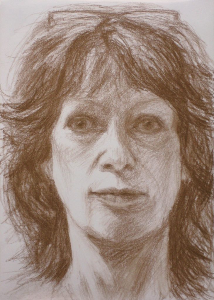 met sepiapotlood, in het kader van de FB Selfportrait Drawing Community challenge
