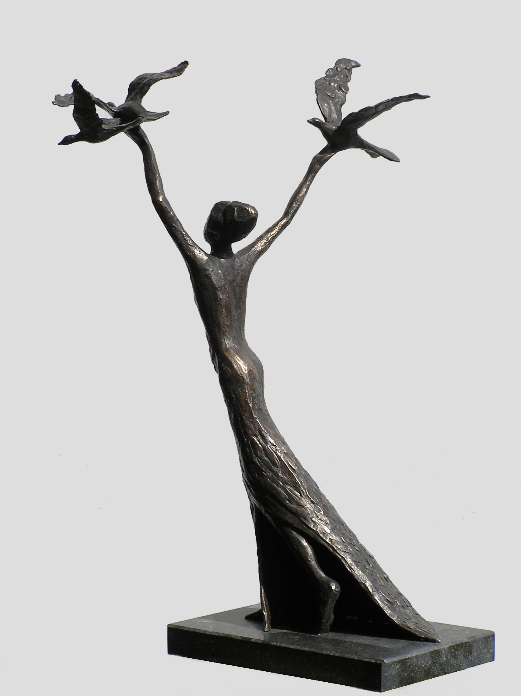 Uitvliegen. Brons op Belgisch hardsteen. Kleine oplage.