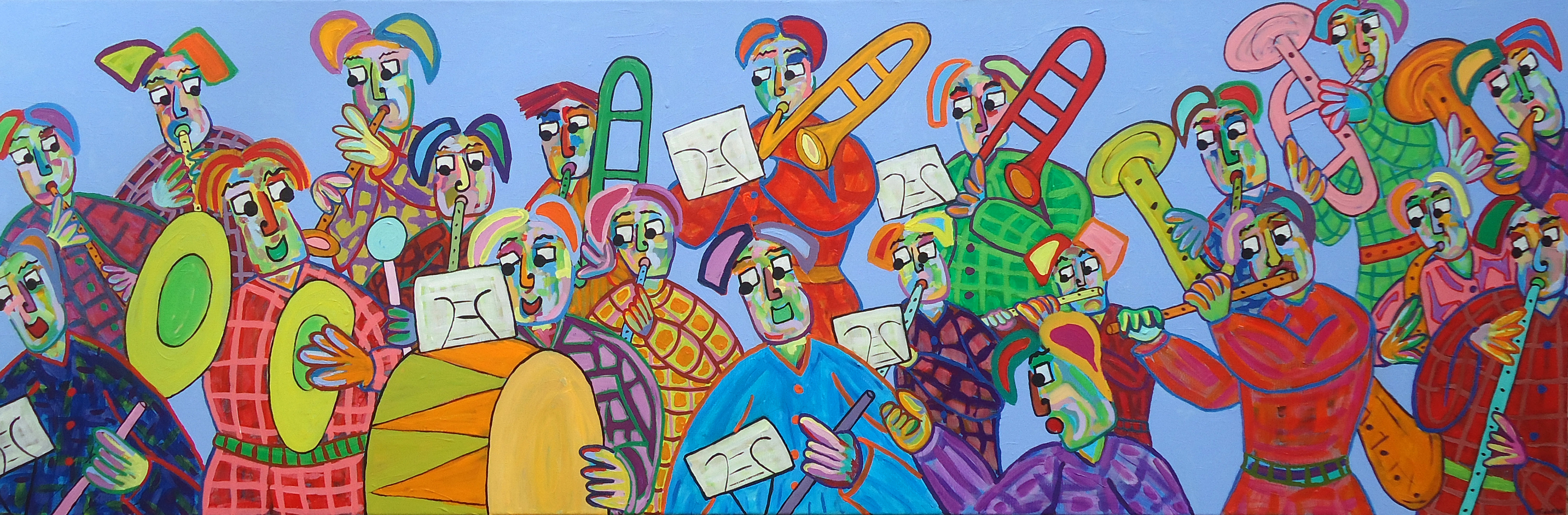Samen muziek maken op straat Het schilderij Straatmuzikanten is te huur voor 31,25 Euro per maand