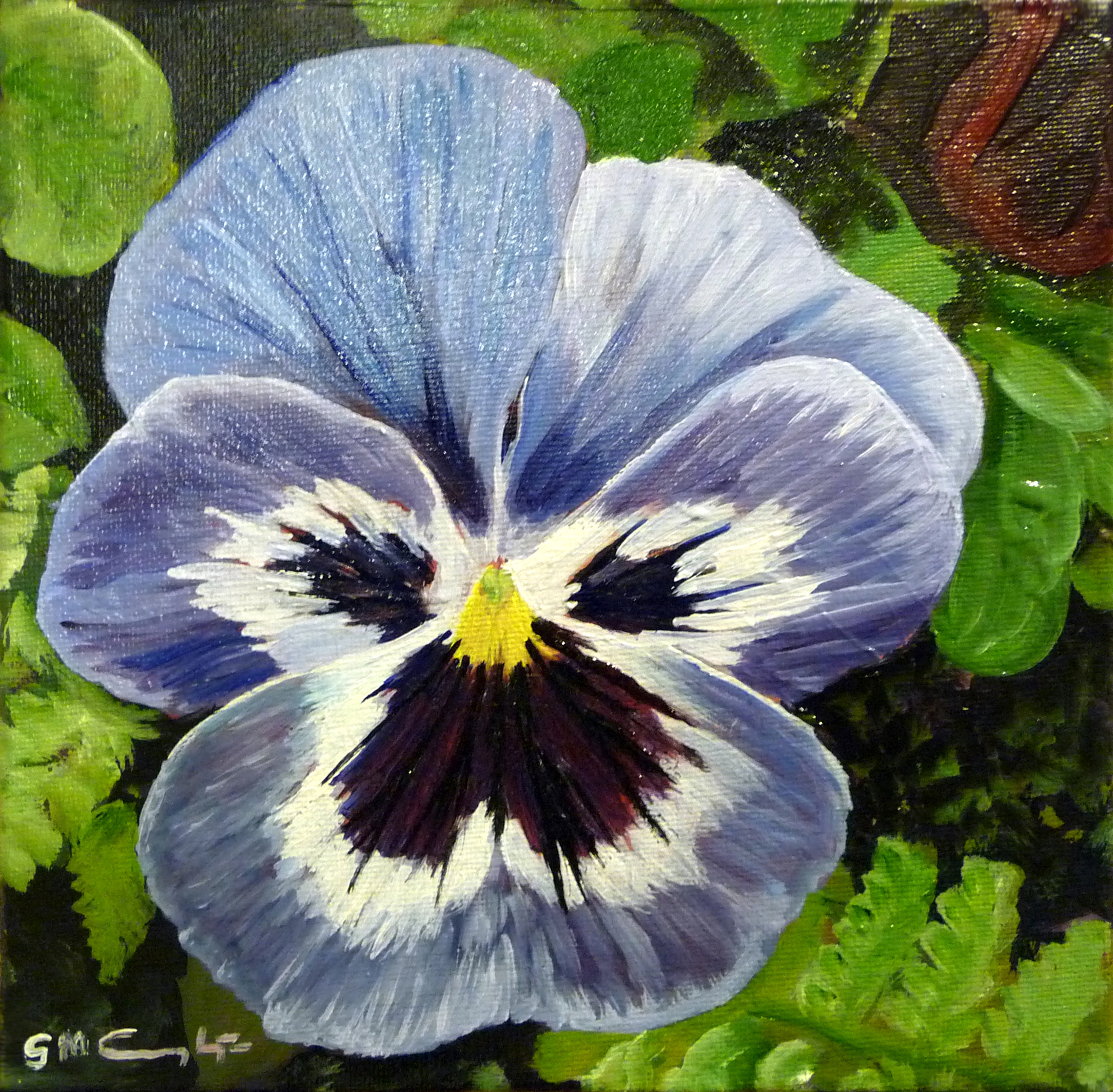Oil Canvas Olieverf Painting Bloemetje Viooltje Blauw-wit