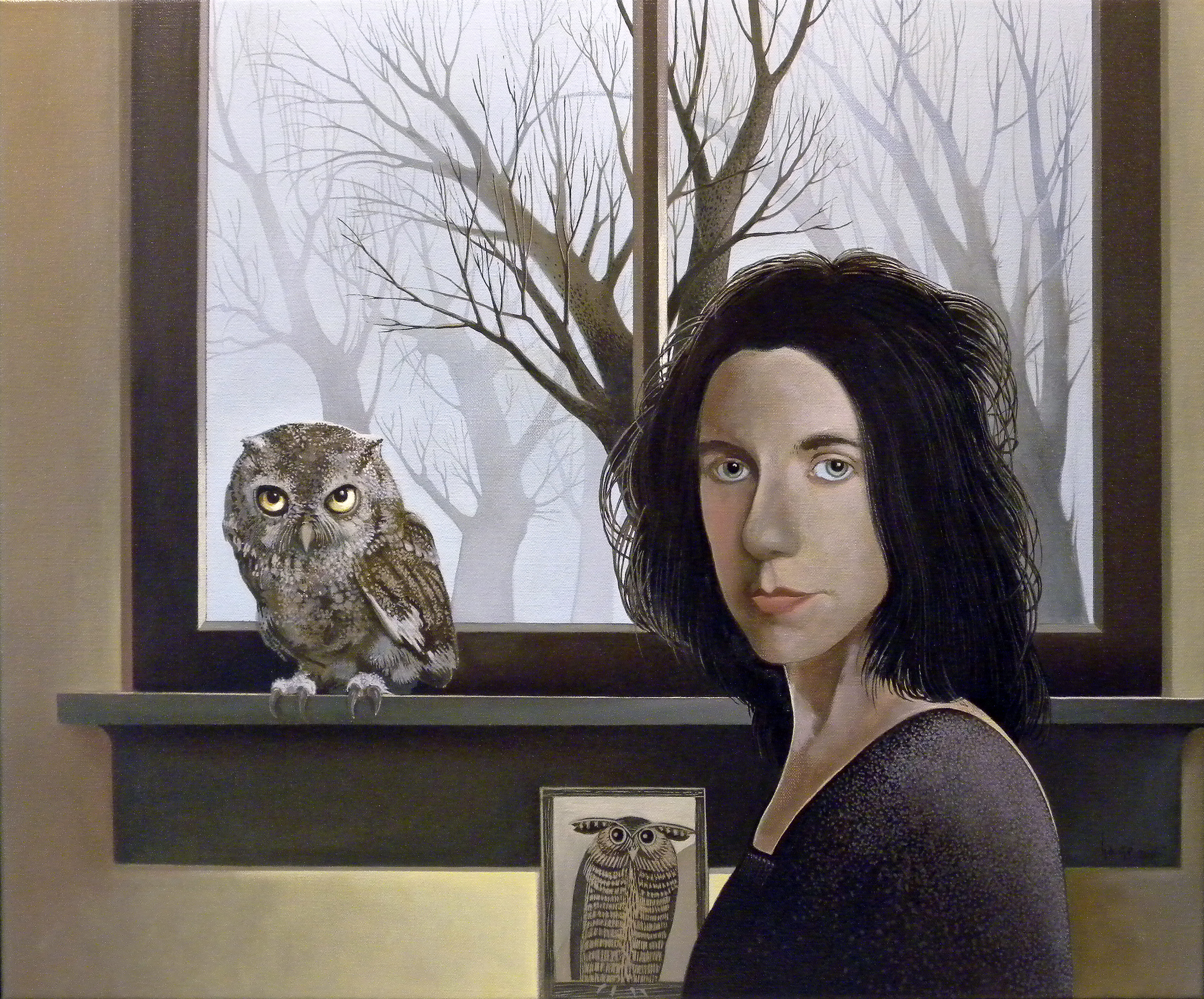 Mysterieus Vrouw Uiltjes Landschap Binnen-buiten