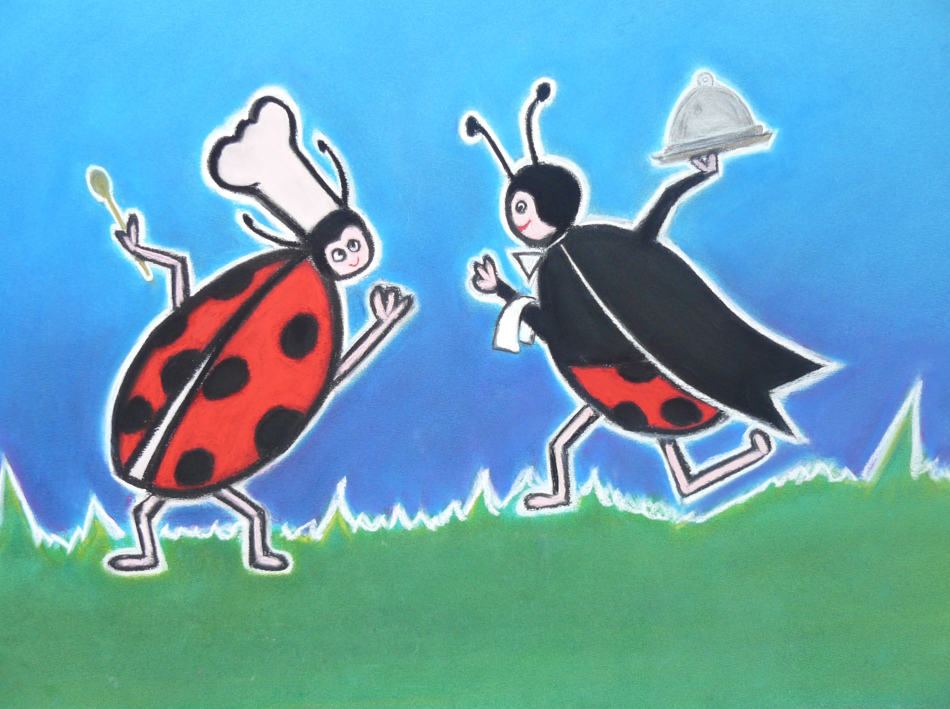 Rood Blauw Groen Dieren Keuken Blij Lief Koken Lieveheerstbeestjes Lievelingsgerecht Vrollijk Surreel Fantasie