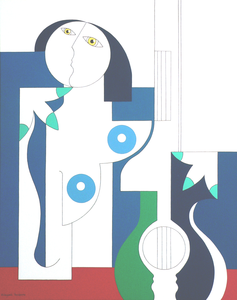 Wit Modern Vrouw Art Gezichten Muziek Gitaar Humor Music Hildegarde Handsaeme