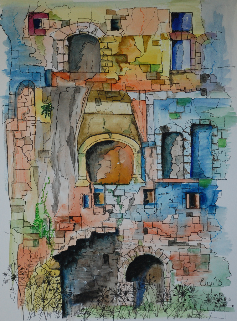 I am living and working in a small village on the river Dordogne in the department of the Lot. I paint, usually in water colours, but also guache and oils and get my inspiration from taking photographs on long walks with my dogs. I am becoming increasingly aware of the potential piece of art in all I see. I love ruined agricultural buildings where nature has taken over once again.