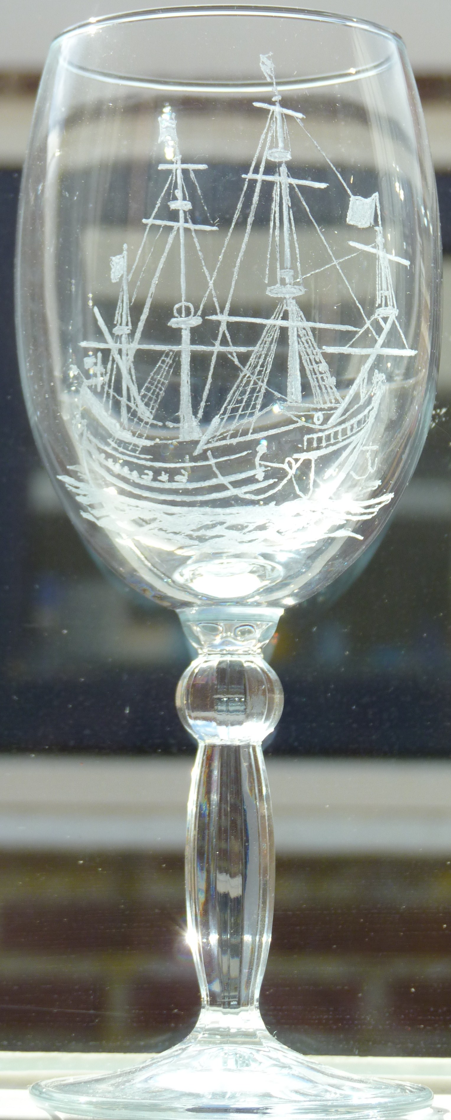 Gravure op wijnglas.