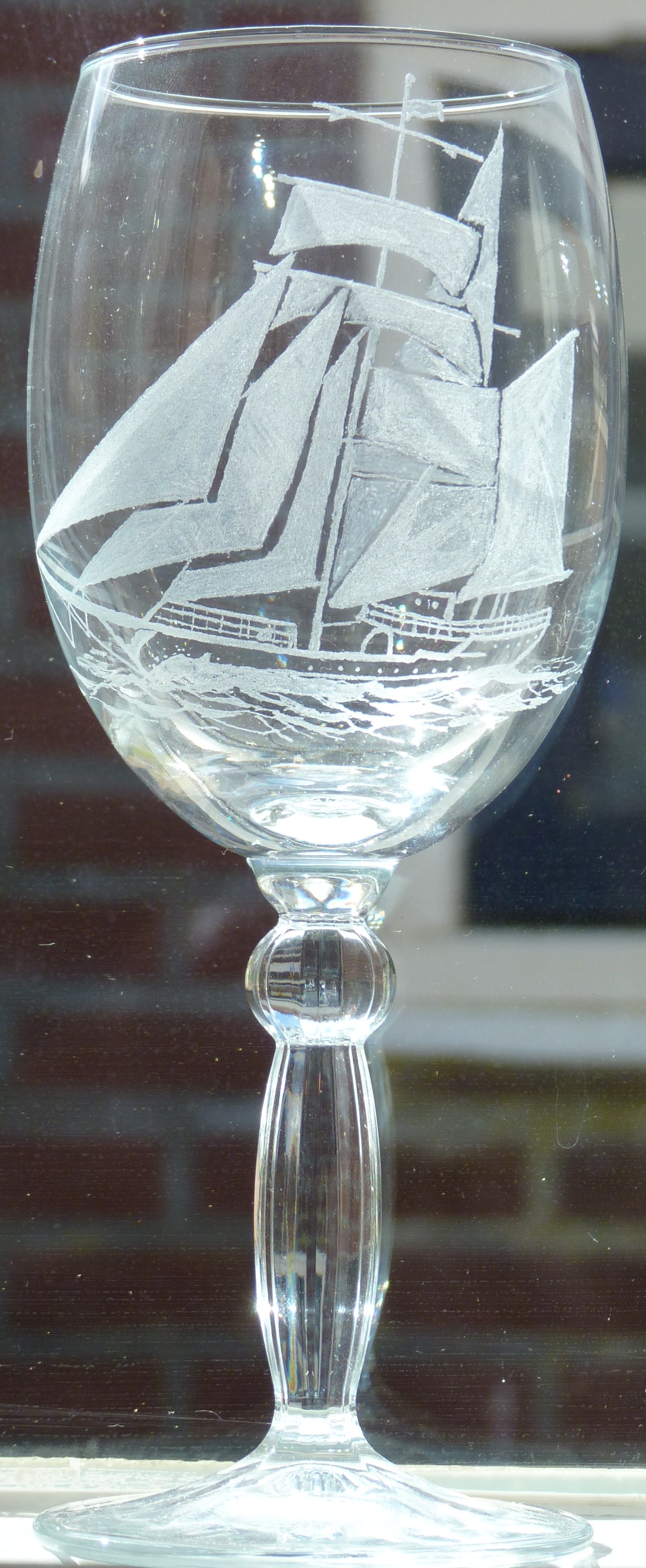Zee Glas Realistisch Wijnglas Zeilschip Glasgravure