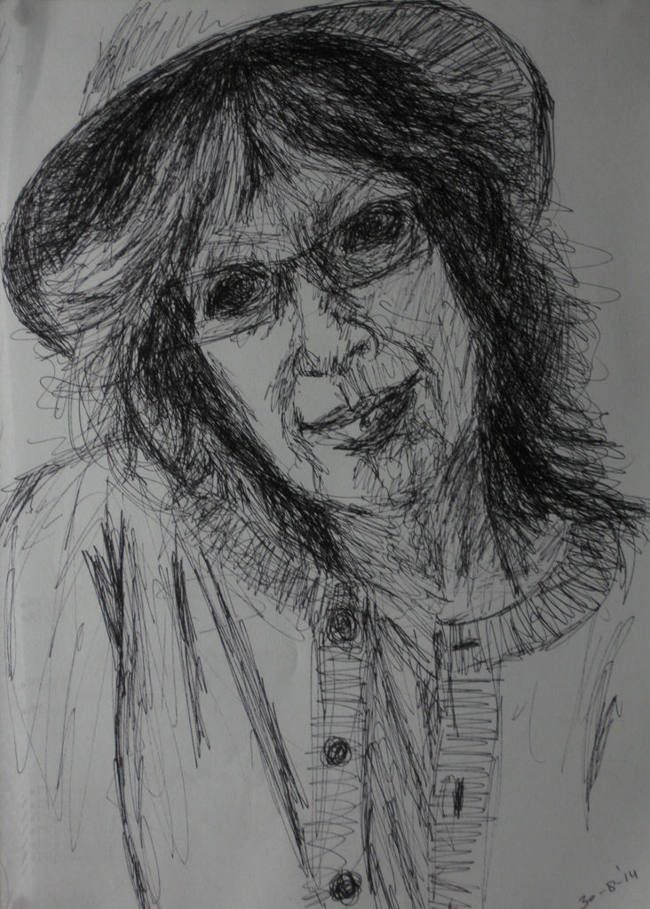 krabbelportretje met fineliner, i.h. kader v.d. FB Selfportrait Drawing Community