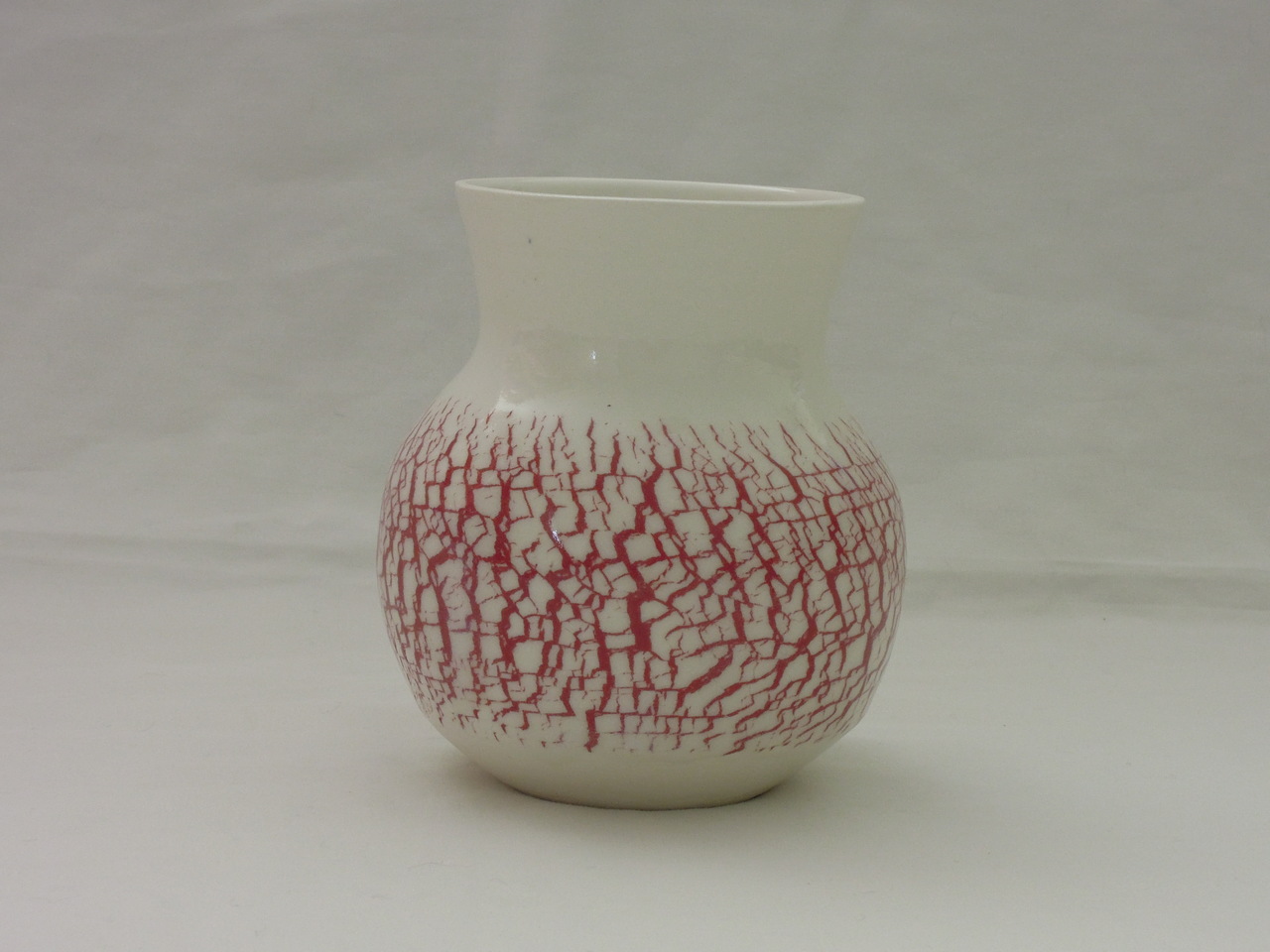 Vaas gedraaid van porselein. Ingesmeerd met waterglas en na het draaien opgevuld met engobe.