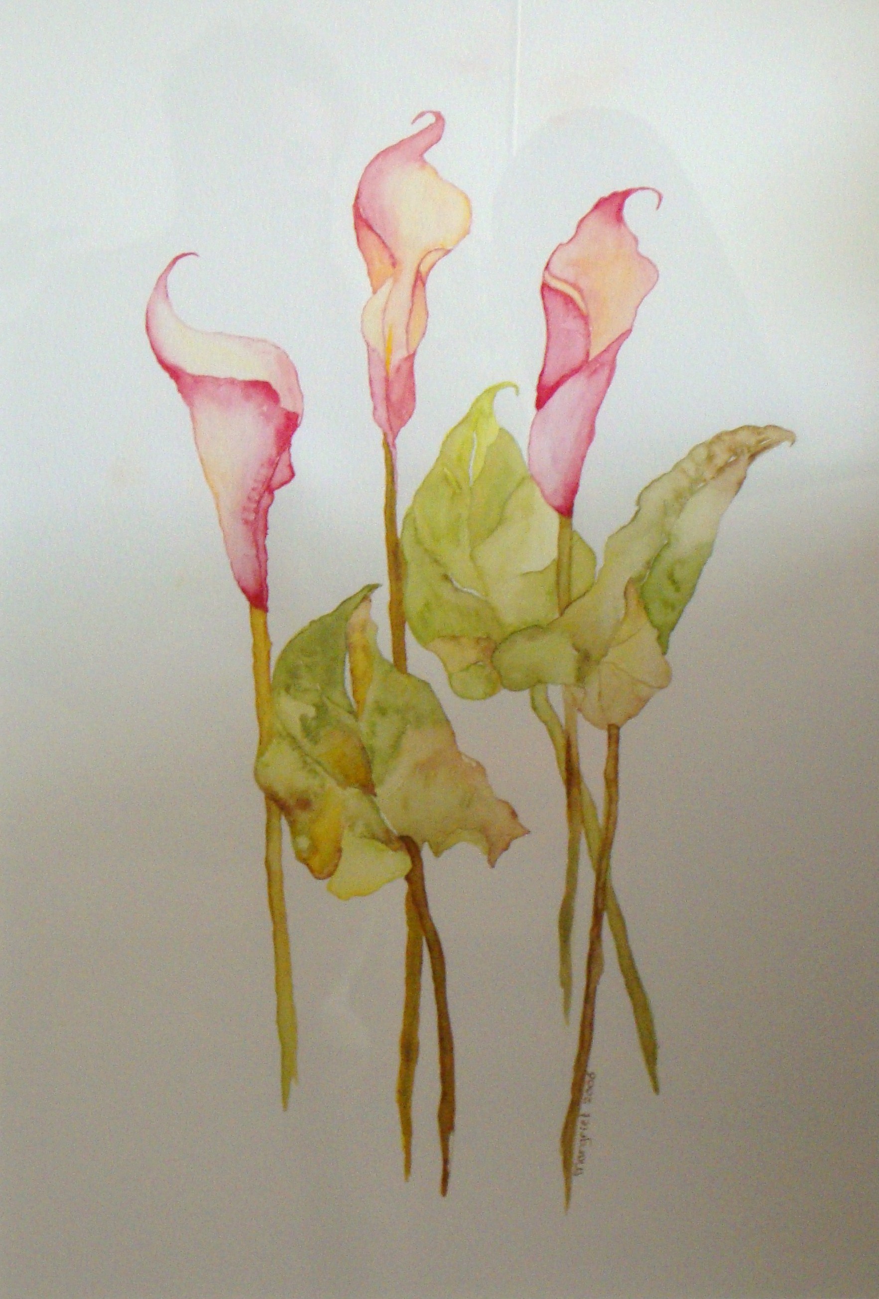 Bloemen, aronskelken. Dit werk is ingelijst met passe partout 1