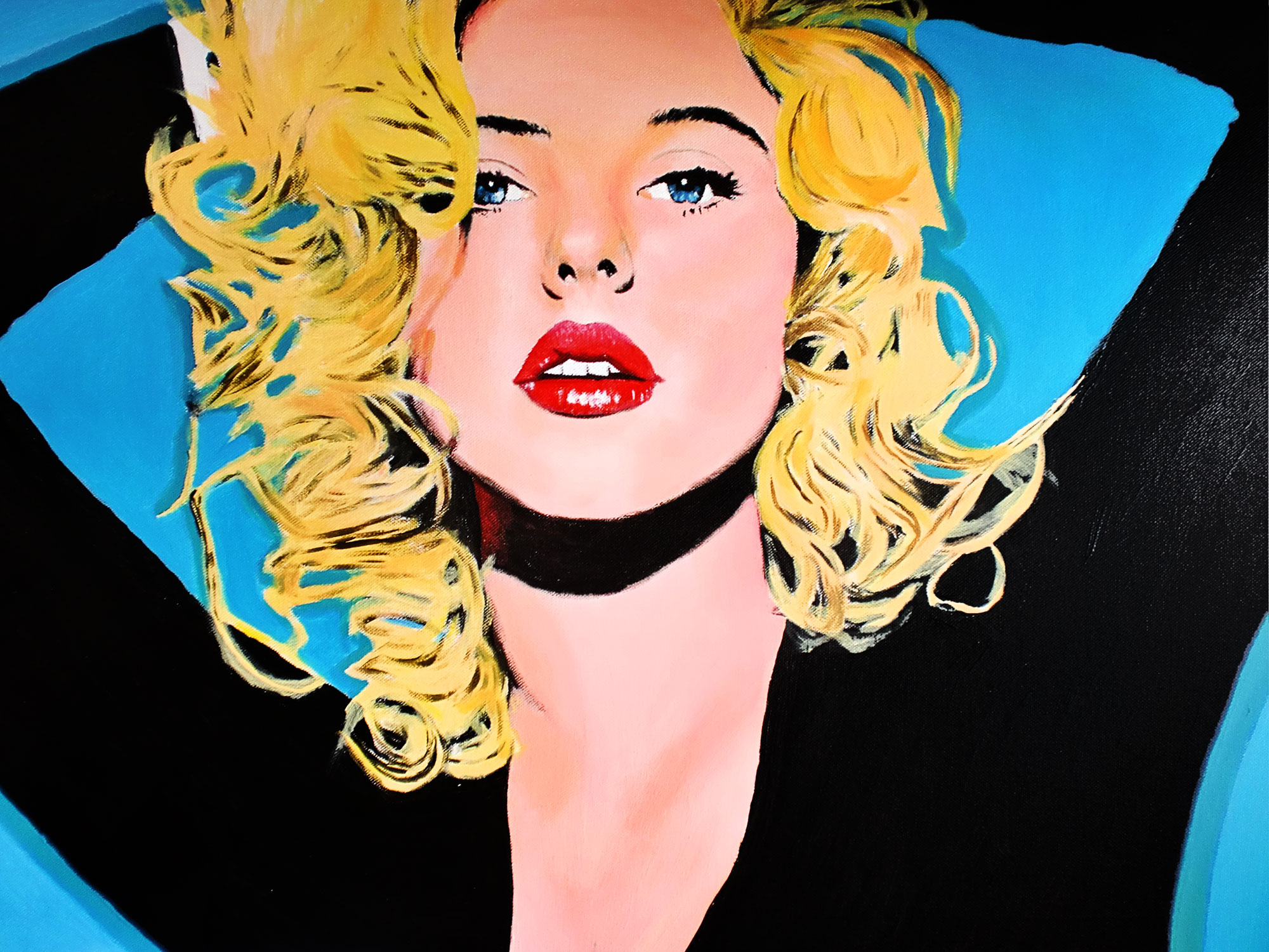 Mensen Acryl Portret Gezicht Canvas Doek Portrait Face Blond Paint People Verf Blonde Self Curly