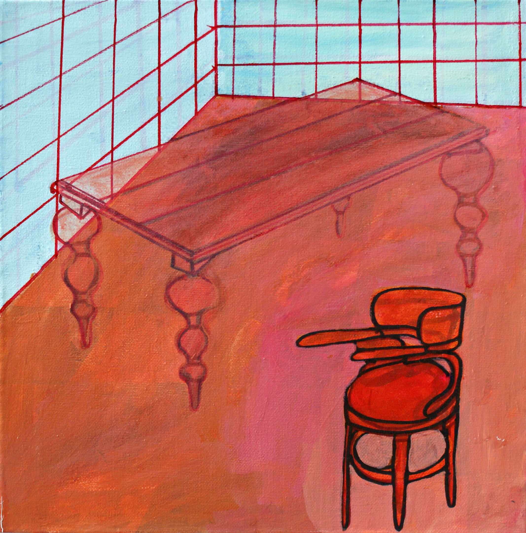 Schilderij Rood Stoel Schilderkunst Badkamer Tegels