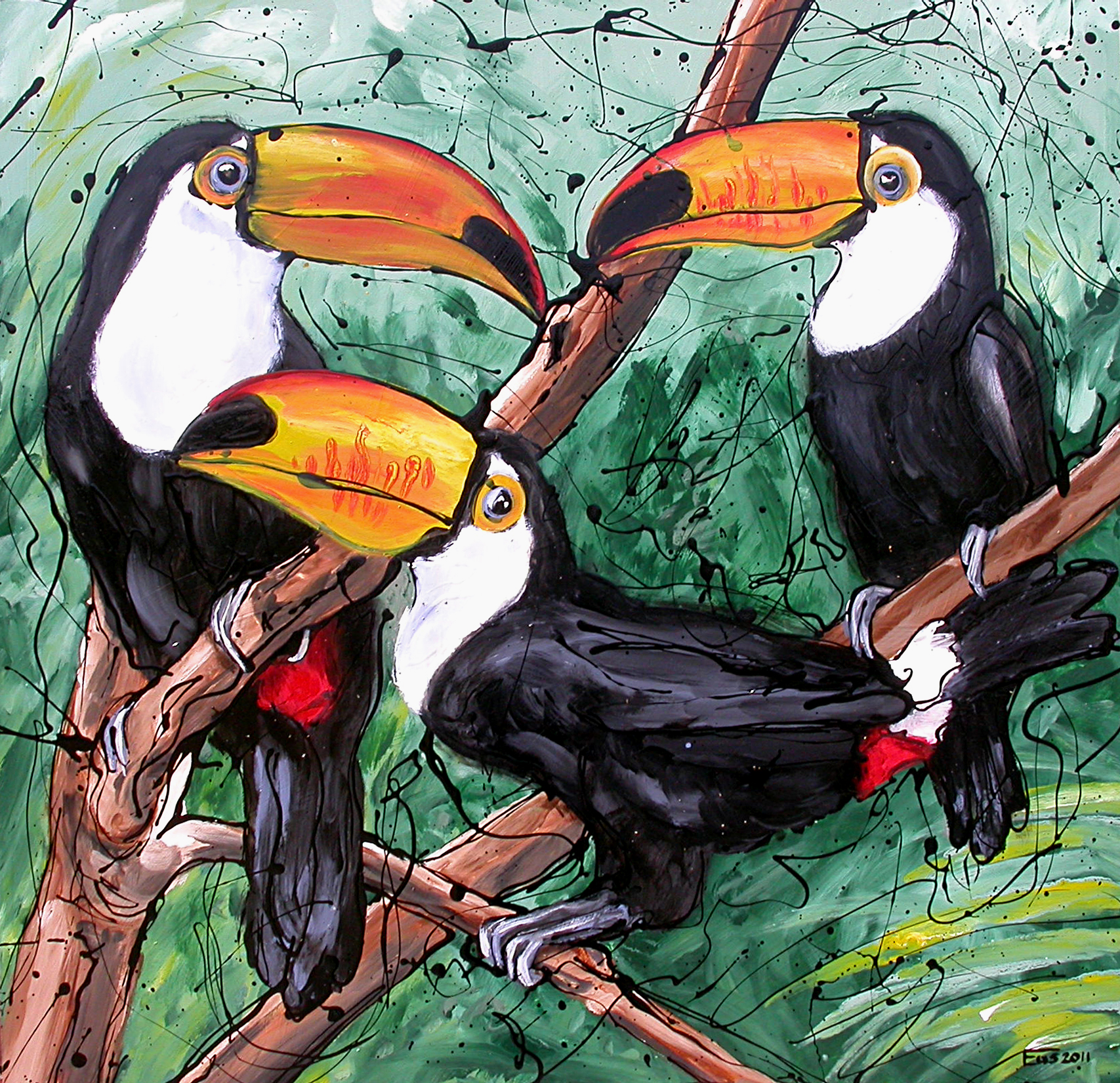 Rood Zwart Groen Wildlife Realistisch Tropisch Red Green Black Birds Vogels Tropical Erlinde Ufkes Stephanus Animalart Dierenkunst Toekans Toucan Vogelkunst Kippenkunst Birdart Chickensart Vogelschilderijen Kippenschilderijen