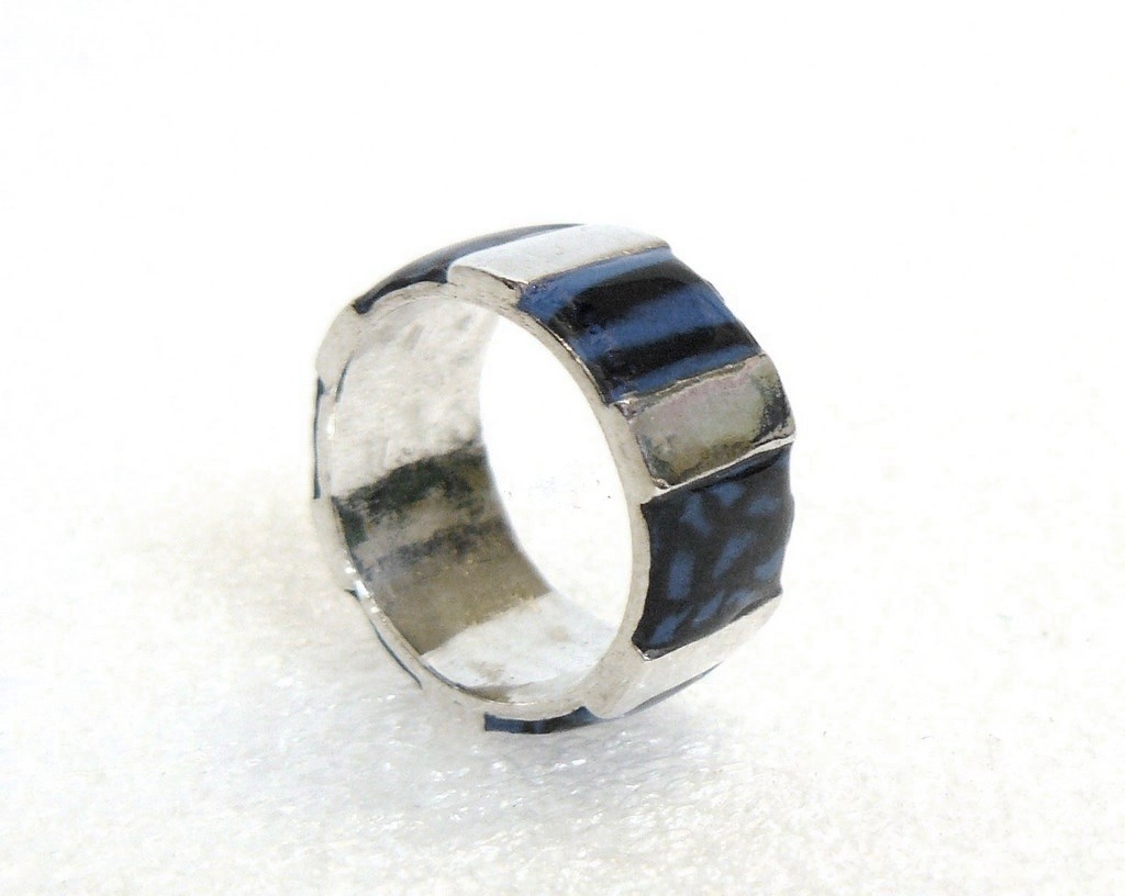 Ring van 999 zilver met inleg van polymeerklei en UV hars. Ringmaat 17 mm.