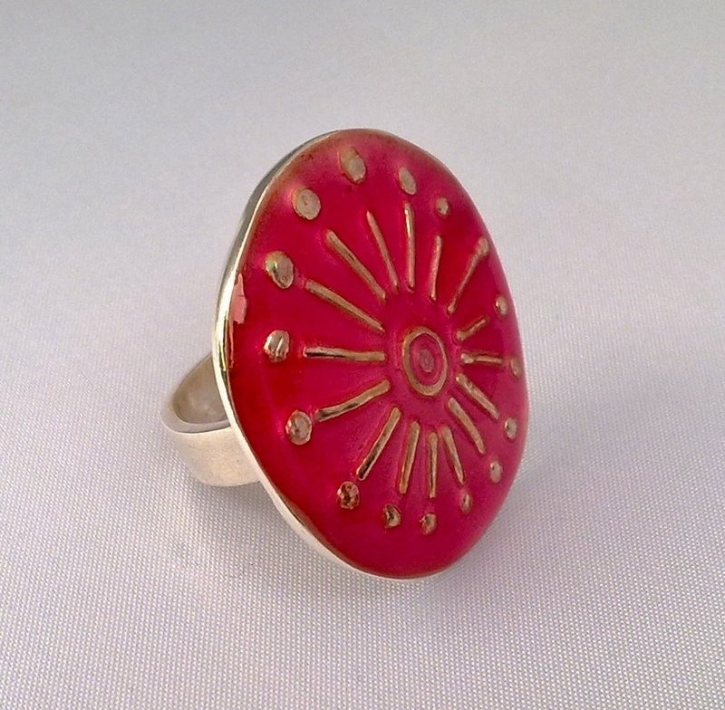 Ring van 999 zilver met gepigmenteerde UV hars.