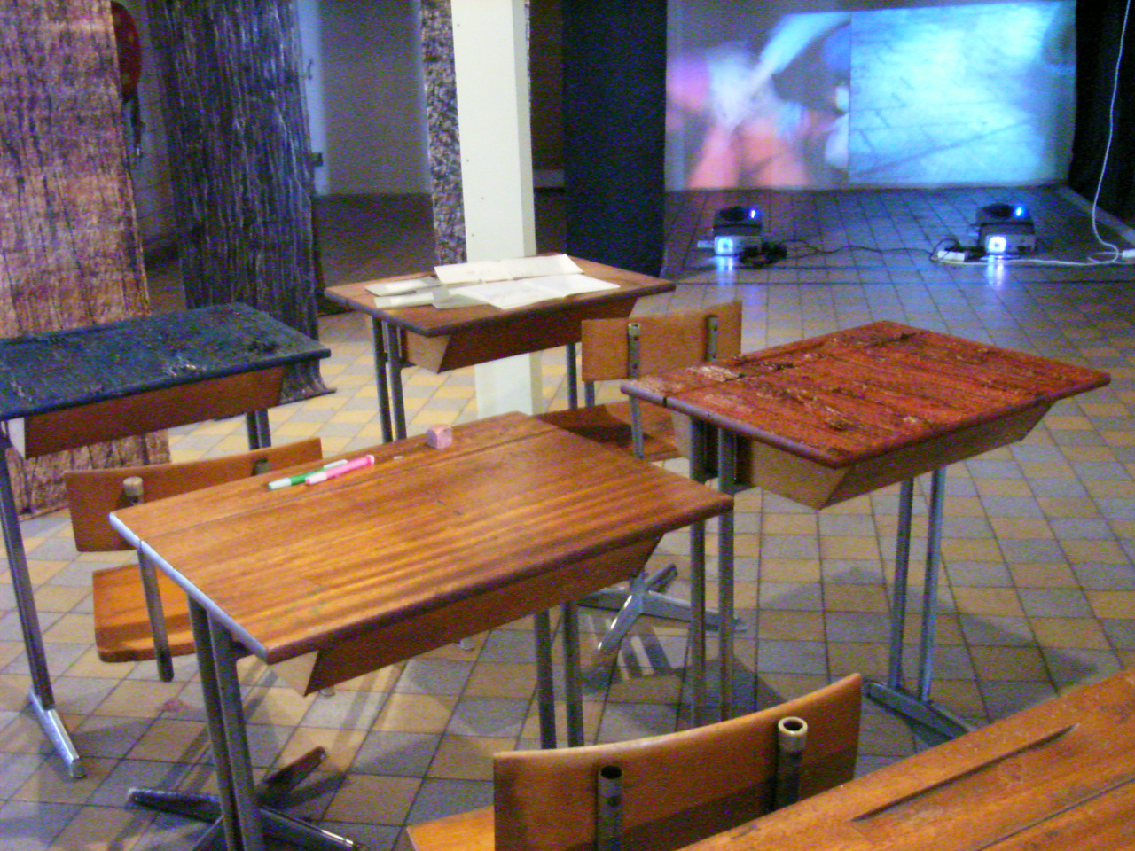 film, audio, projectie, schooltafels, attributen, doeken