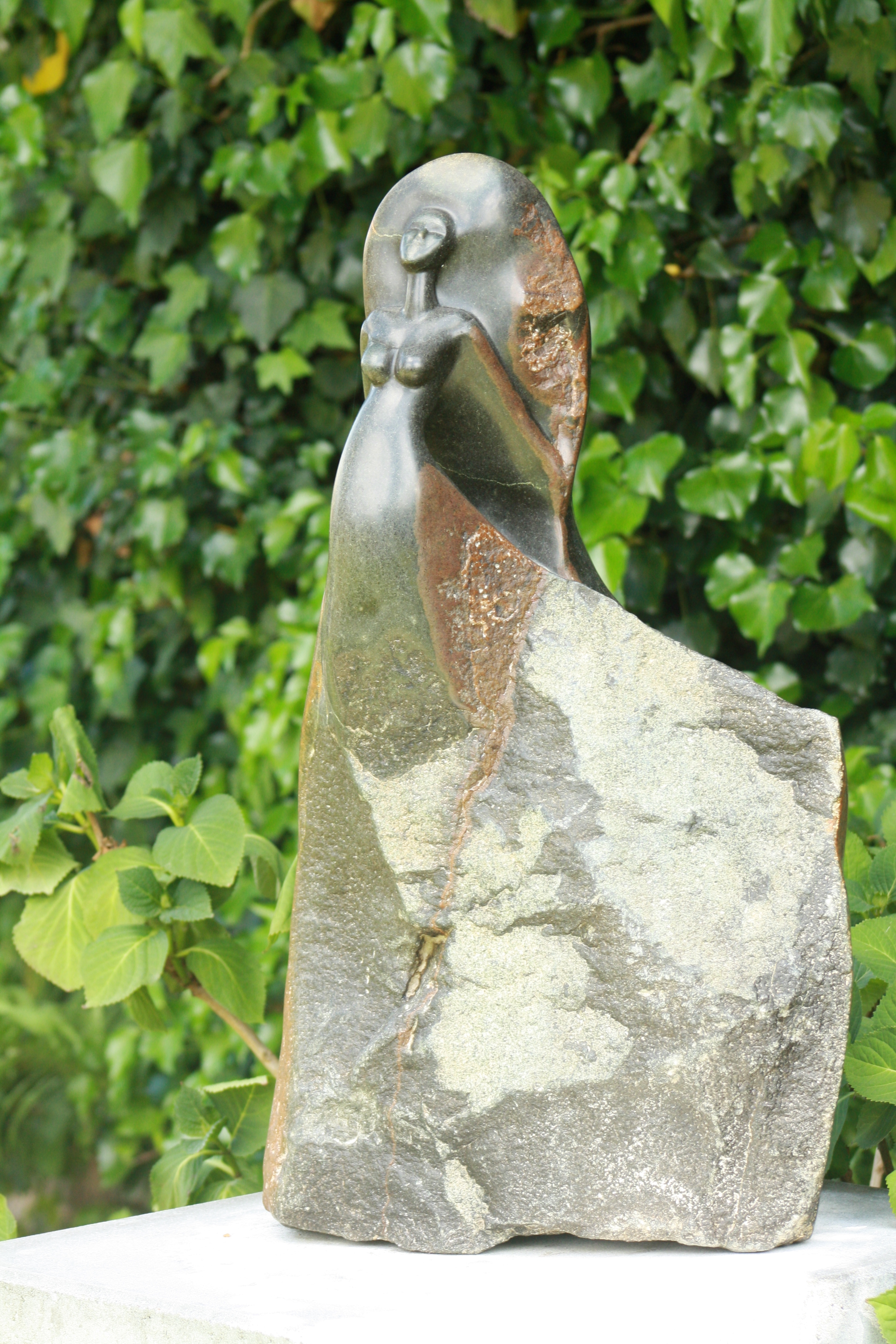 Verwachting. Aan de ene kant een vrouw, aan de andere kant een man. Gaan ze elkaar werkelijk ontmoeten? Gemaakt van springstone, geschikt voor binnen en buiten.