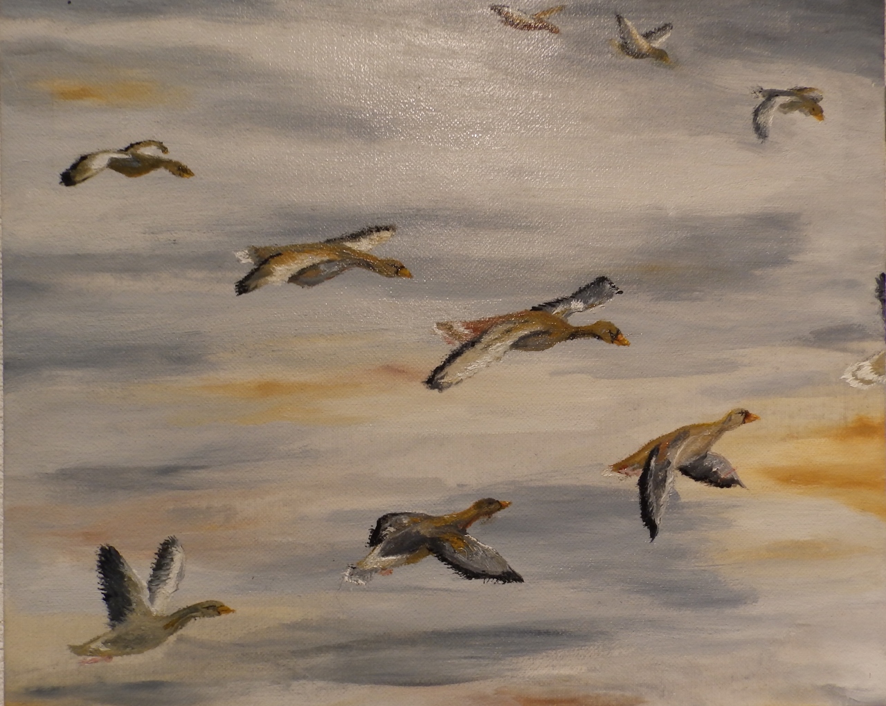 De linker gans is "om het hoekje" en ontpopt zich volledig wanneer apart gehangen. Dit is een observatie vanuit mijn wandelingen bij een natuurgebied.