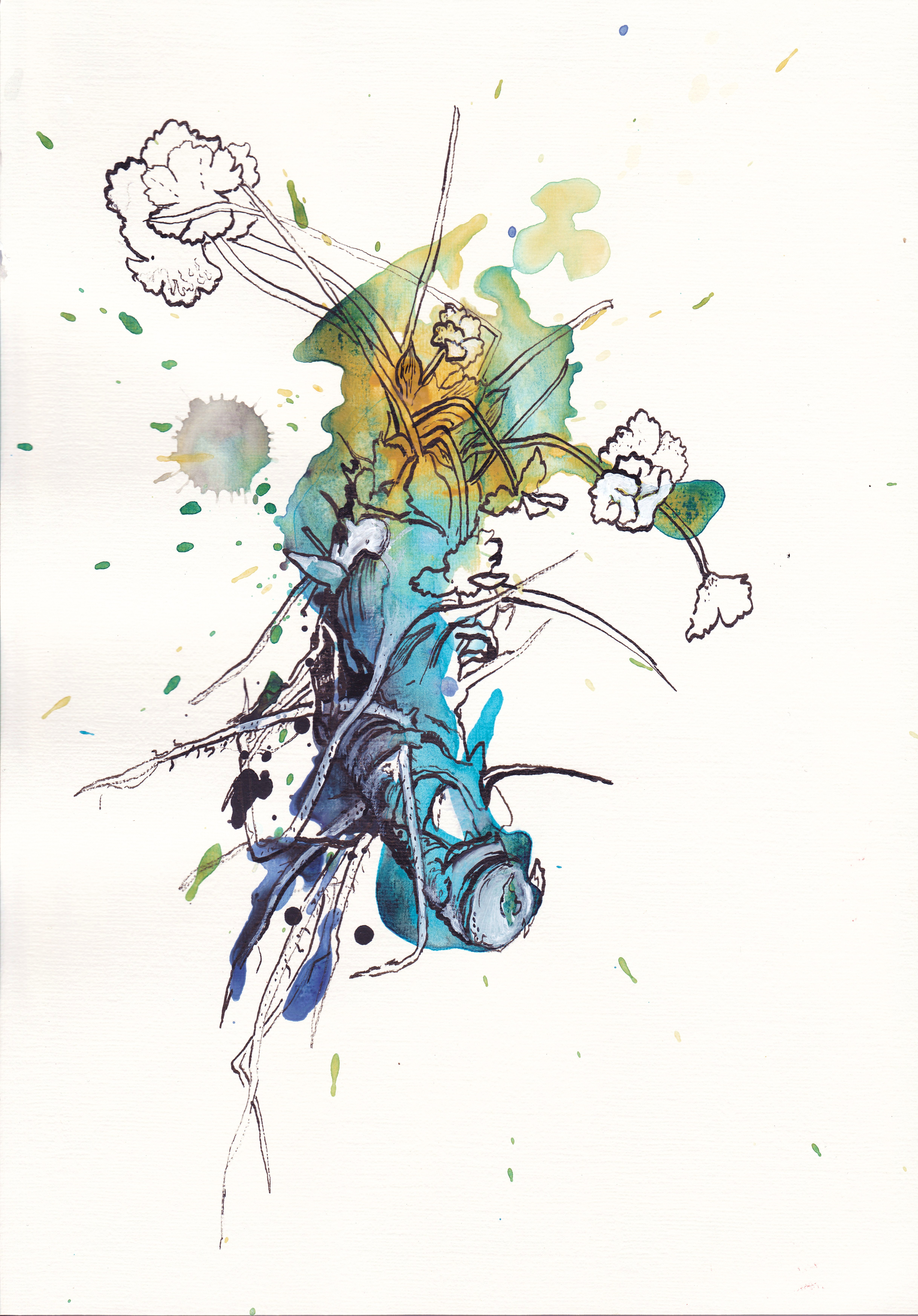 Acrylverf en O.I.-inkt op papier