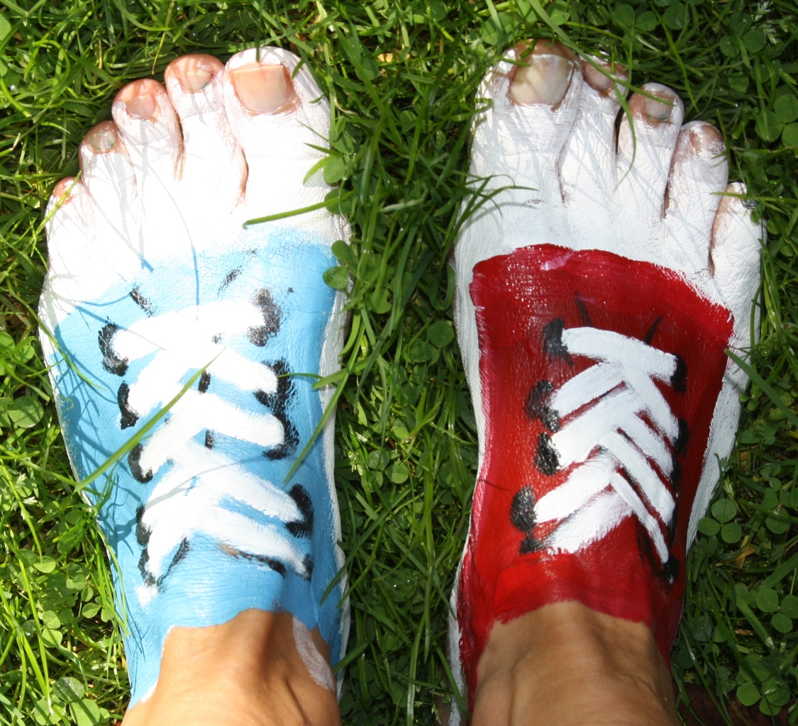 vrije voeten lopen op gras, vrijheid, geen schoenen nodig of toch voor de vorm om mee te lopen in het gareel foto van beschilderde voeten