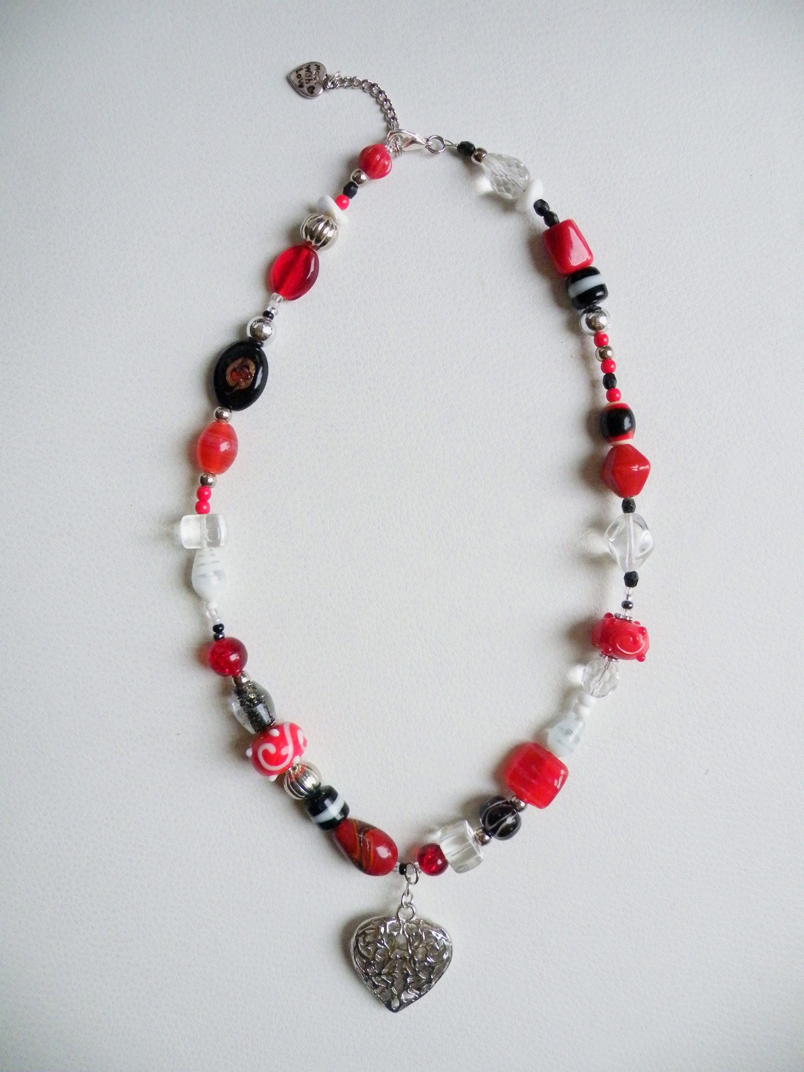 ketting van rode en zwarte, diverse kralen