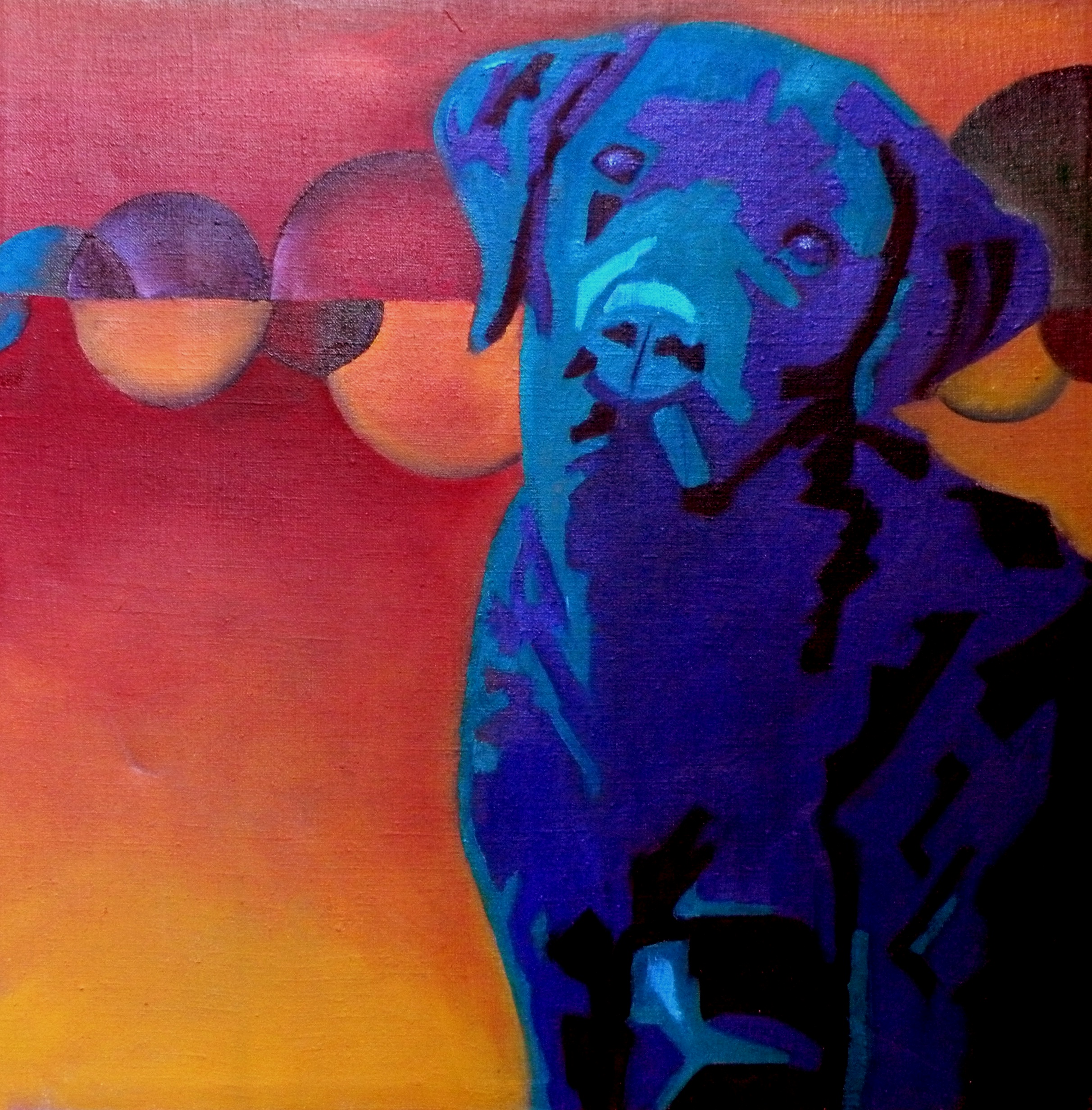 Nikky de bruine labrador in mooie blauwtinten