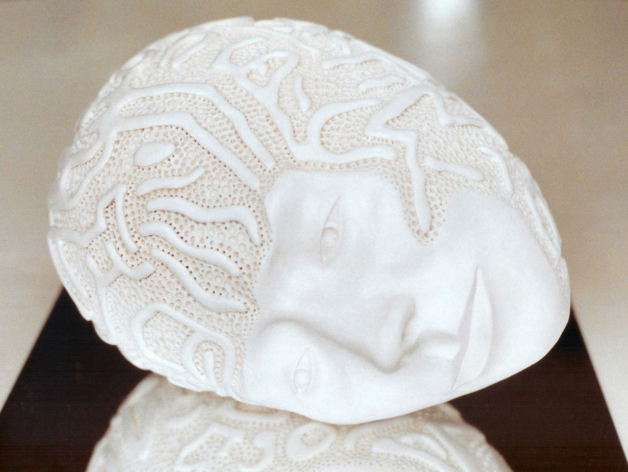 Wit Gezicht Ogen Hoofd Vrouw Keramiek Koraal Tekens Gedachten Gepolijst