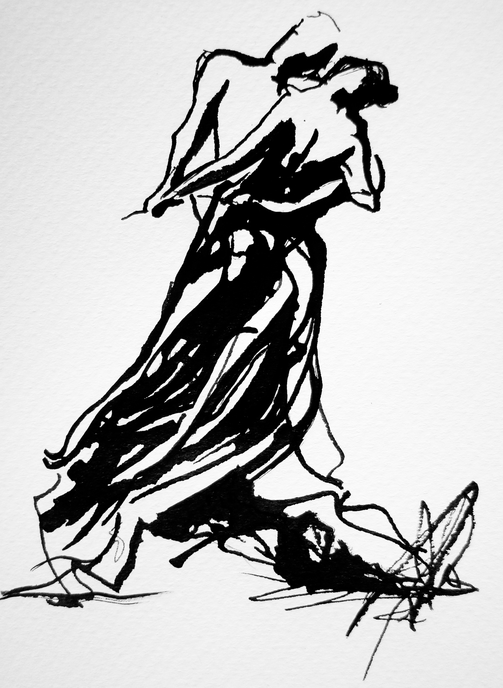 Inkt Rietpen Penseel Abstraherend Vrouw Man Dans Beweging Ritme Tekening Zwart-wit