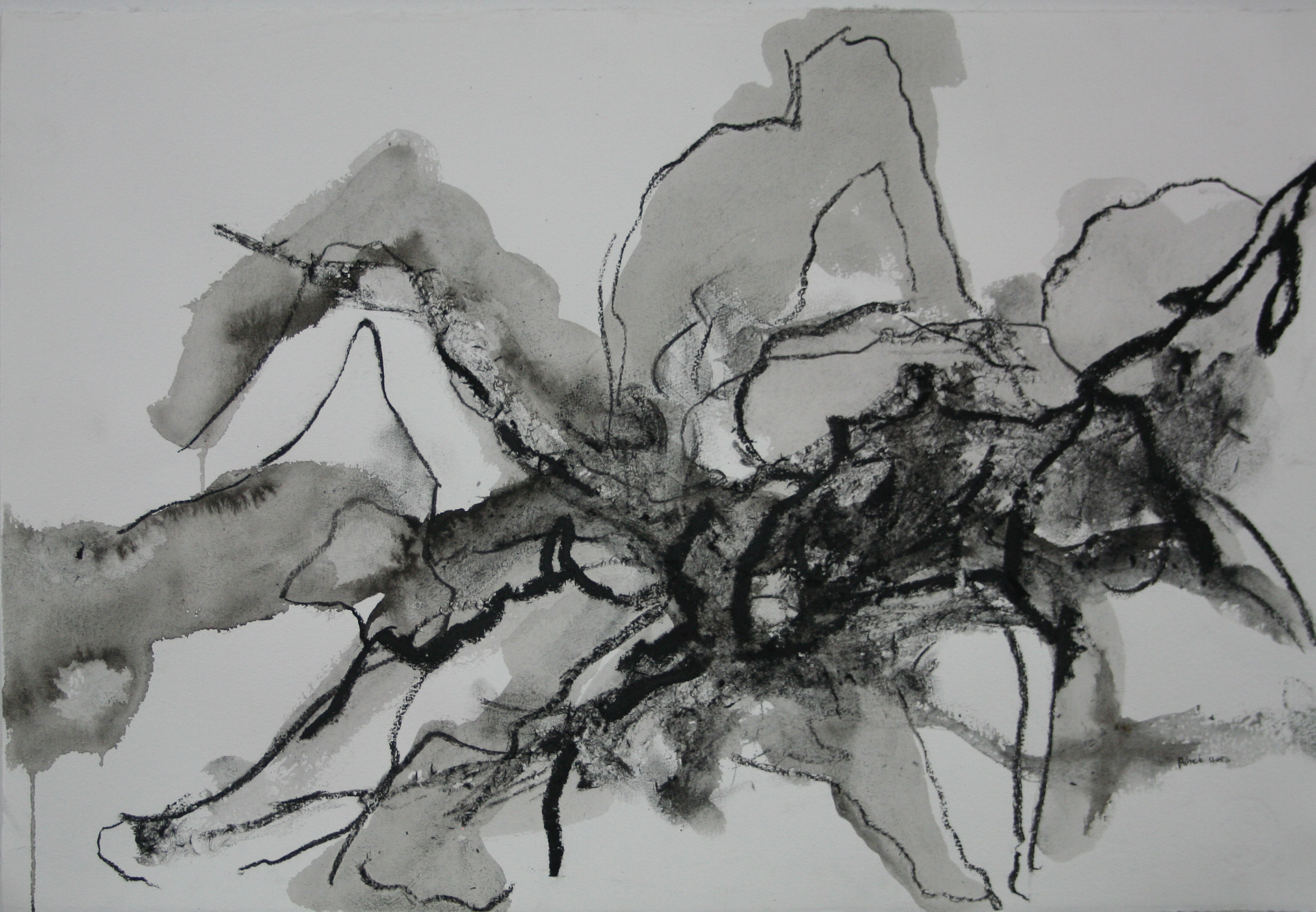Tekening Houtskool Inkt Abstract