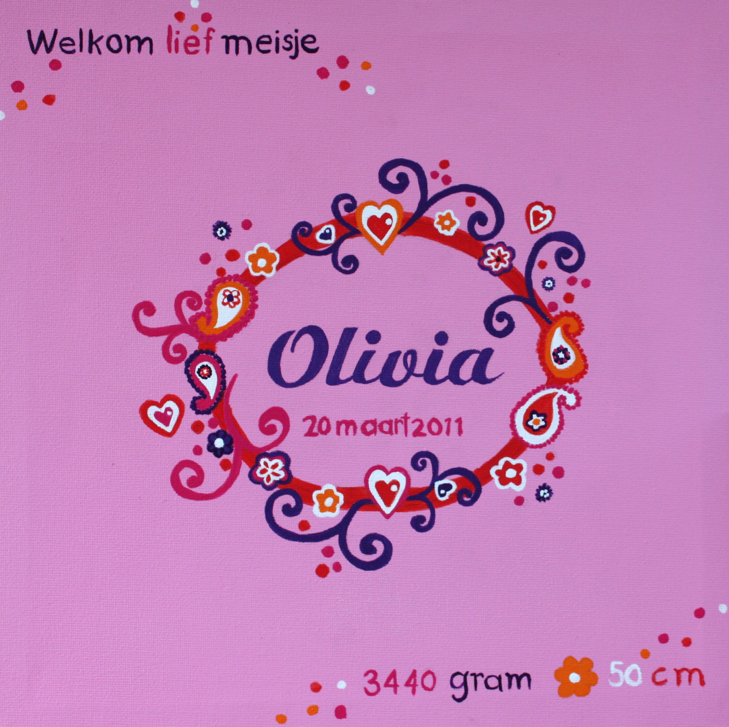 Geboorte schilderij / a.d.h.v. geboortekaartje