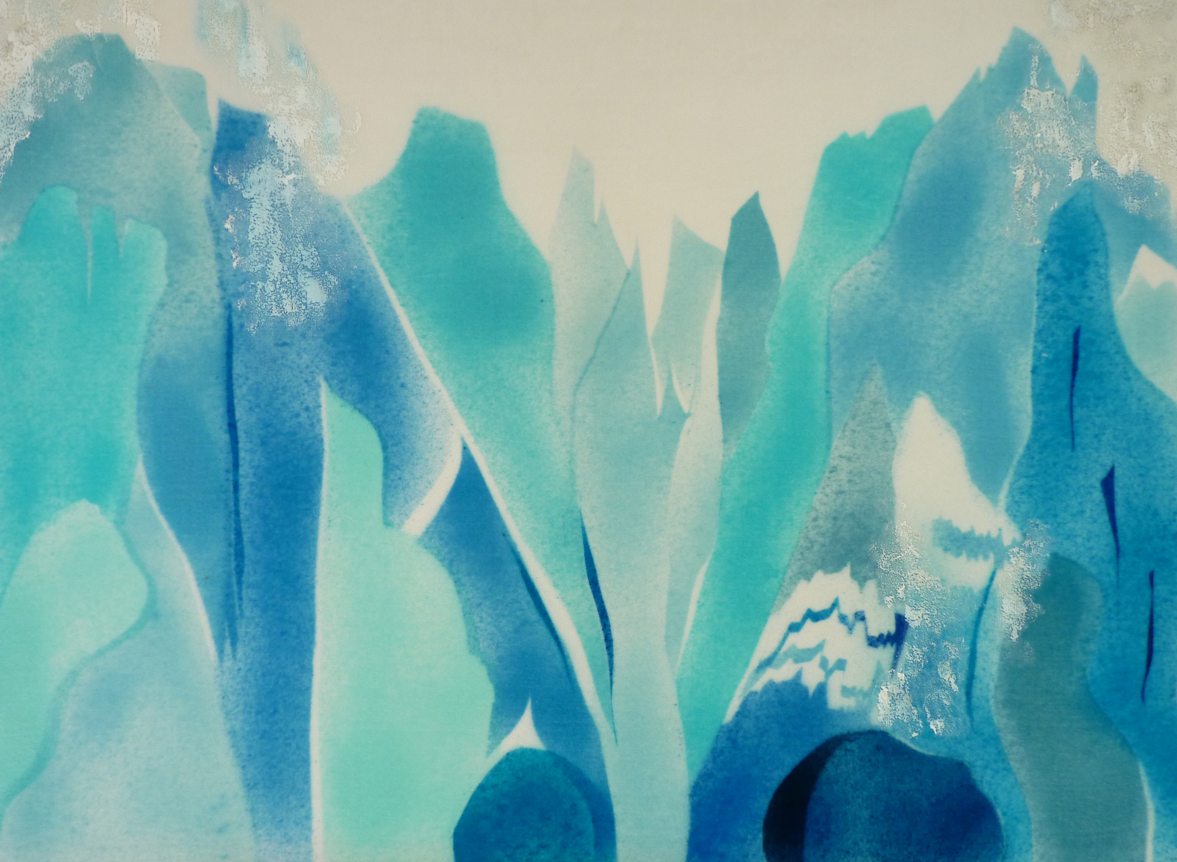 Abstract Gletsjer Blauw/wit Zijdeschildering