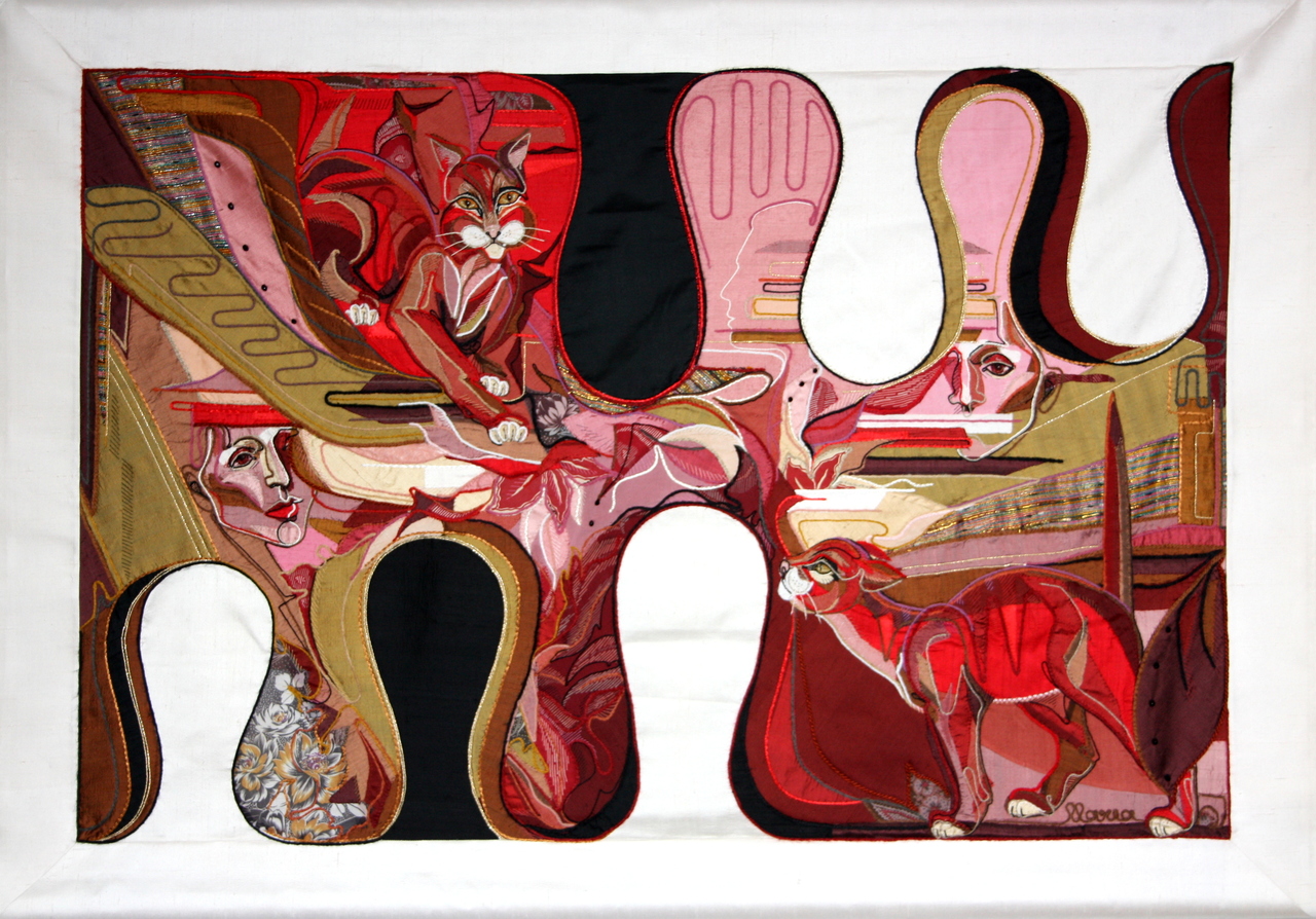 Ik ben vooral geboeid door de mens. Mijn werk is figuratief met een surrealistische inslag.Ik maak textielobjecten (in natuurzijde), olieverfschilderijen en pentekeningen