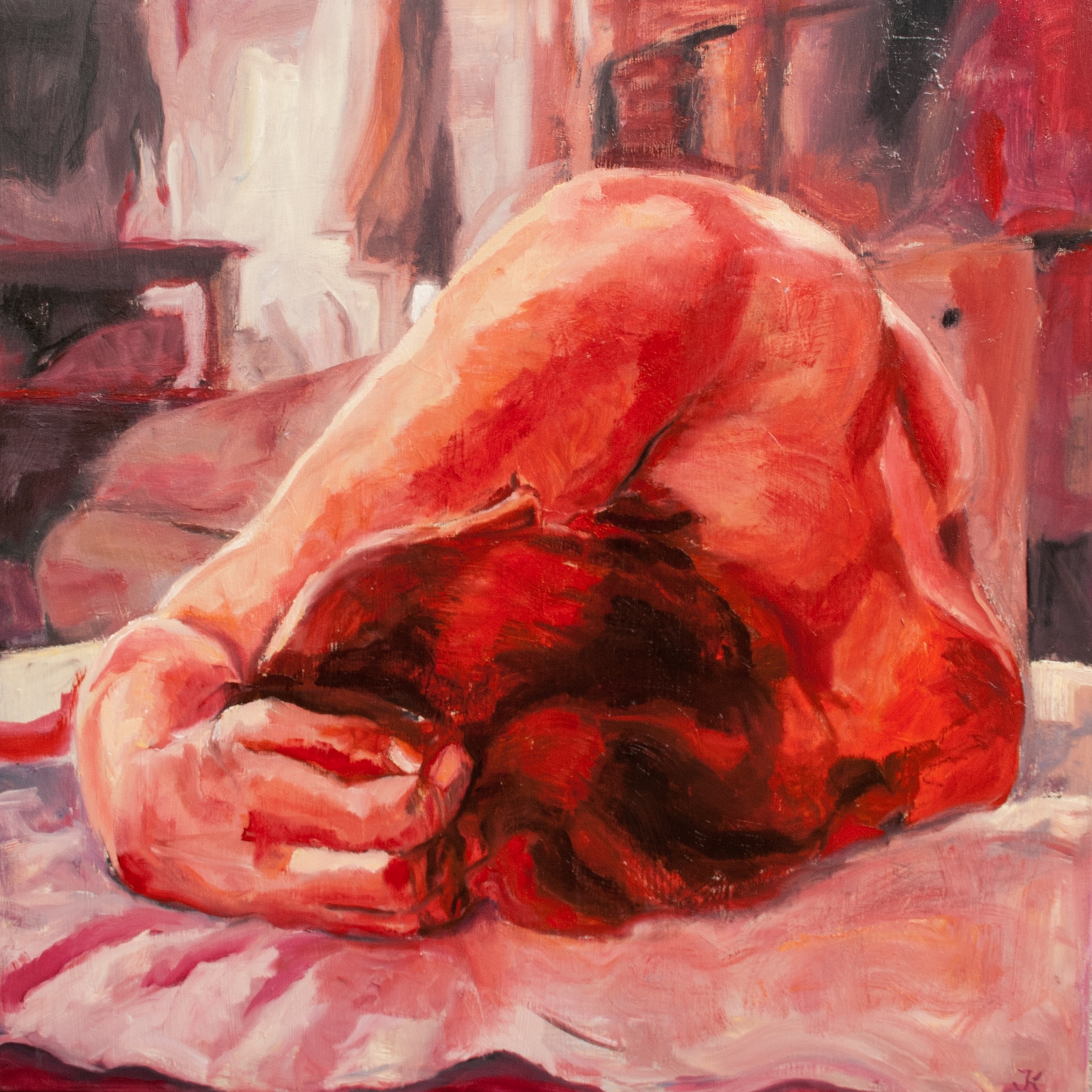 Rood Naakt Model Olieverf Slapend Ongekleed Feeling Safe