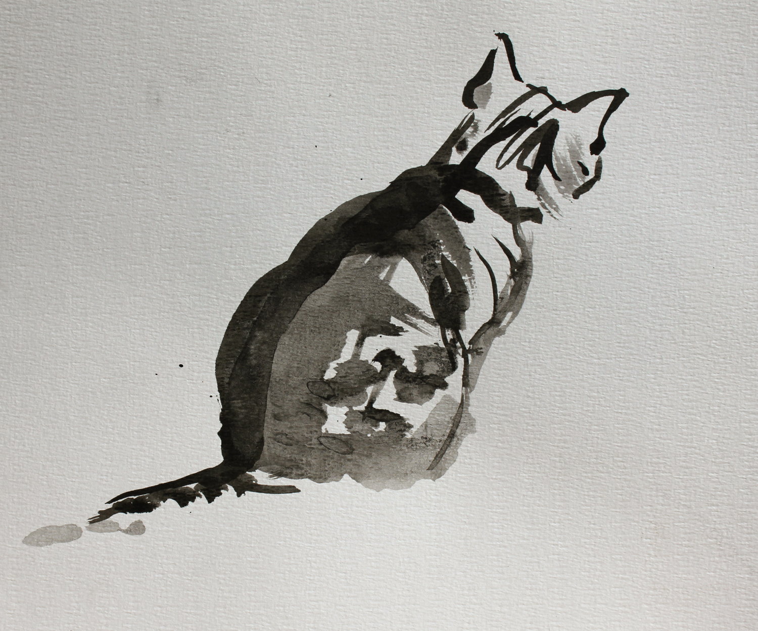 inkttekening van kijkende kat