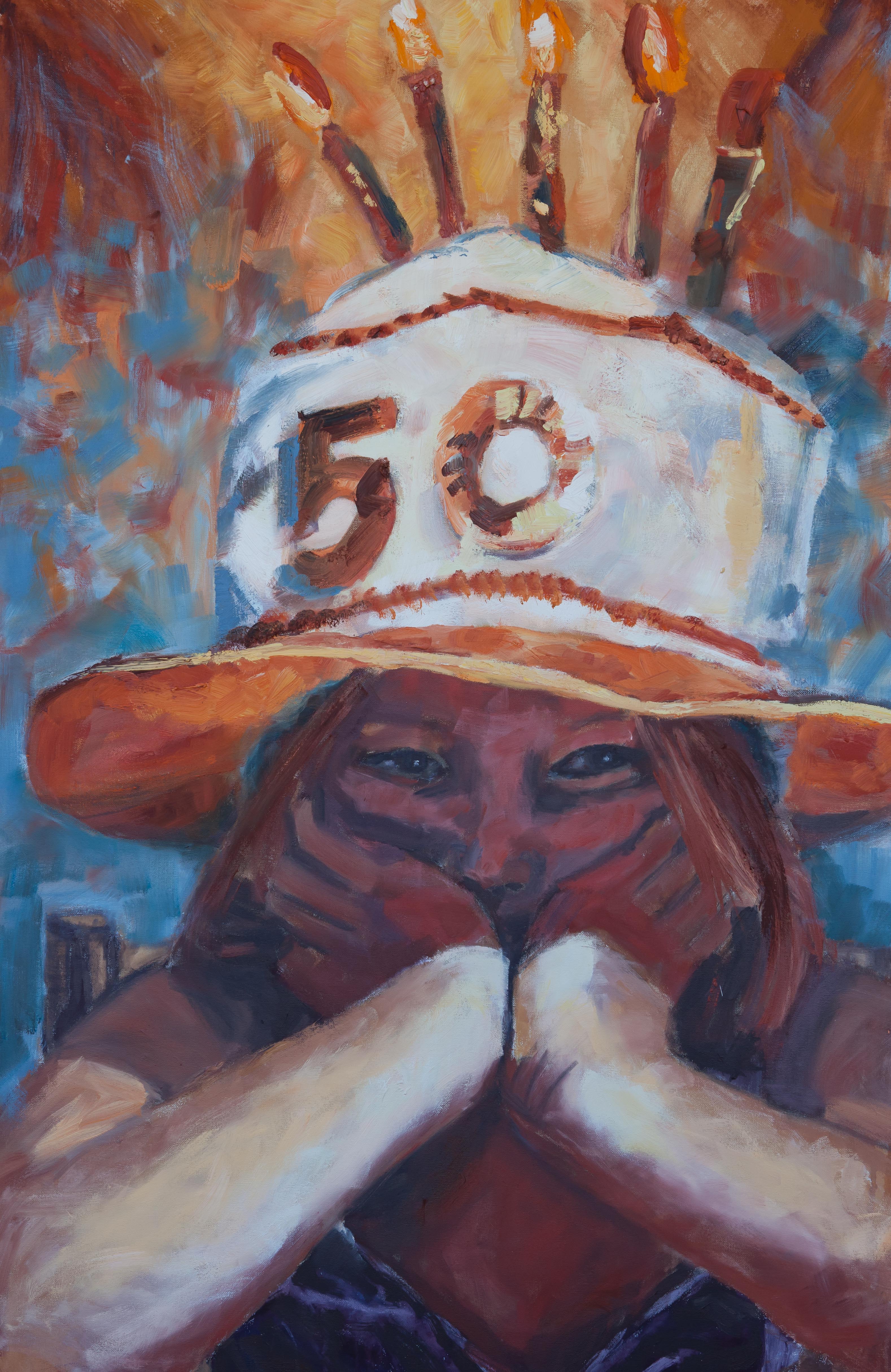 Portret Olieverf Doek Hoed 50 Emma 2010 Hoofdzaken 75x115