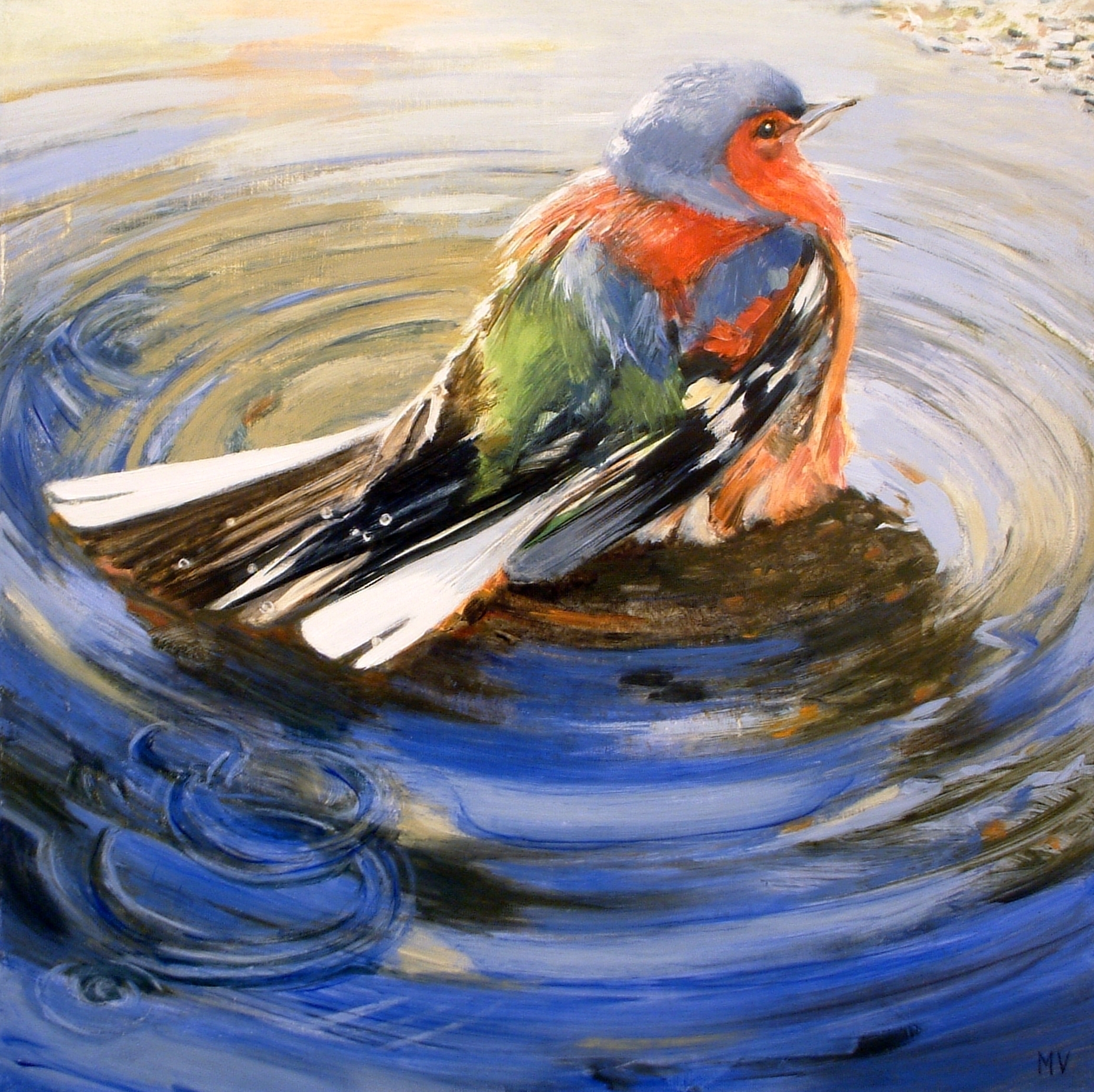 Vogel Water Kleurrijk Dier Realistisch Olieverf Oilpaint Bird Cirkels Animal Circle Realistic Vink Coulorful Finch