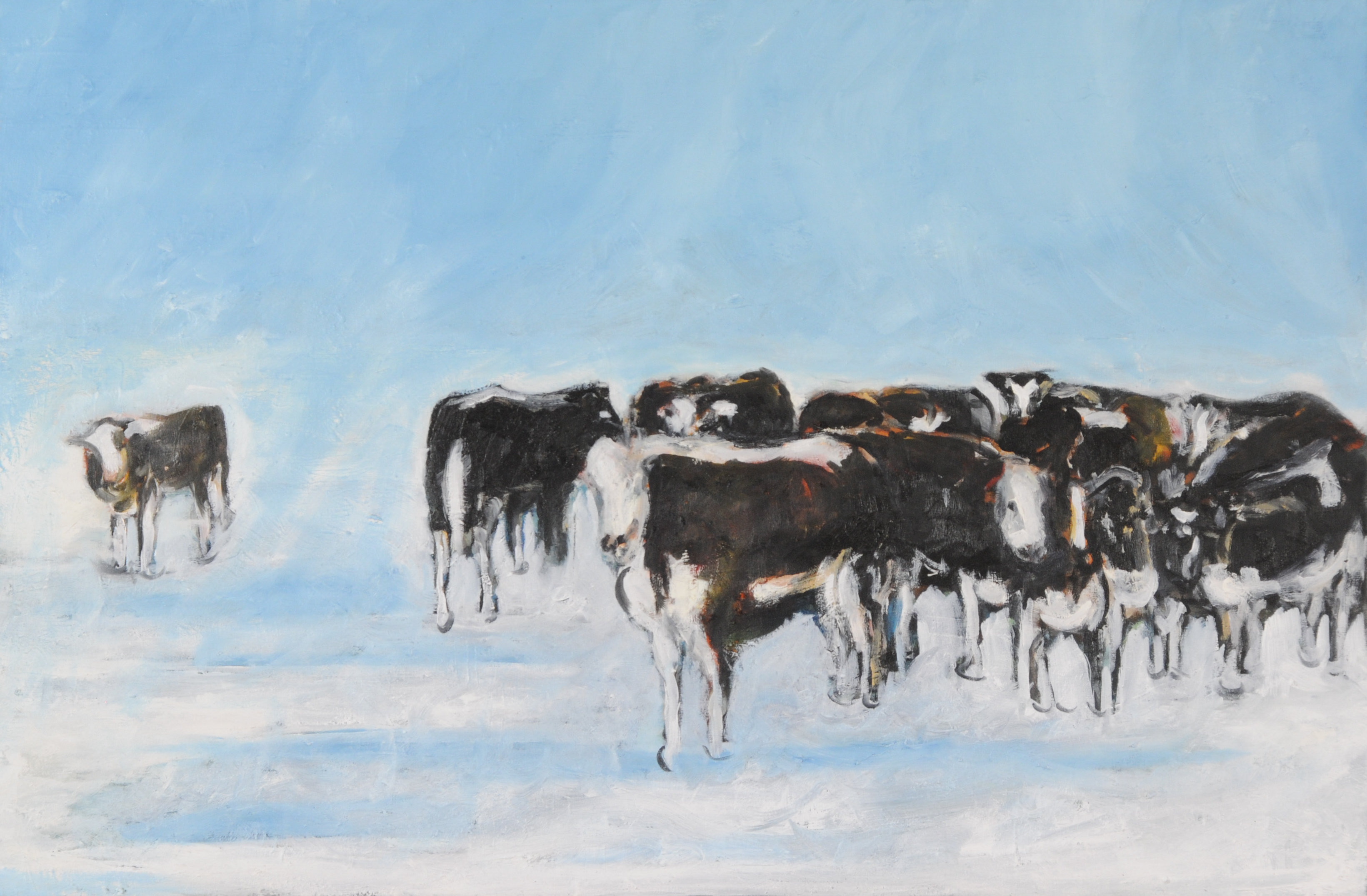 Stieren in winters landschap