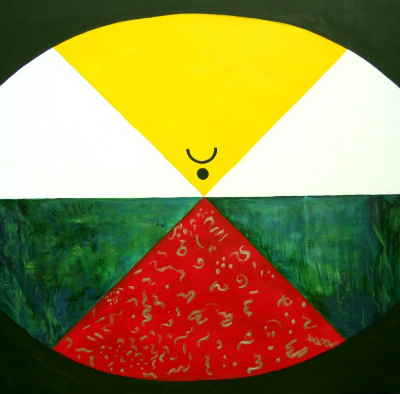 Twee driehoeken raken elkaar. Ik ben de toeschouwer. Er is volheid en er is leegte. Ik heb geen tijd.