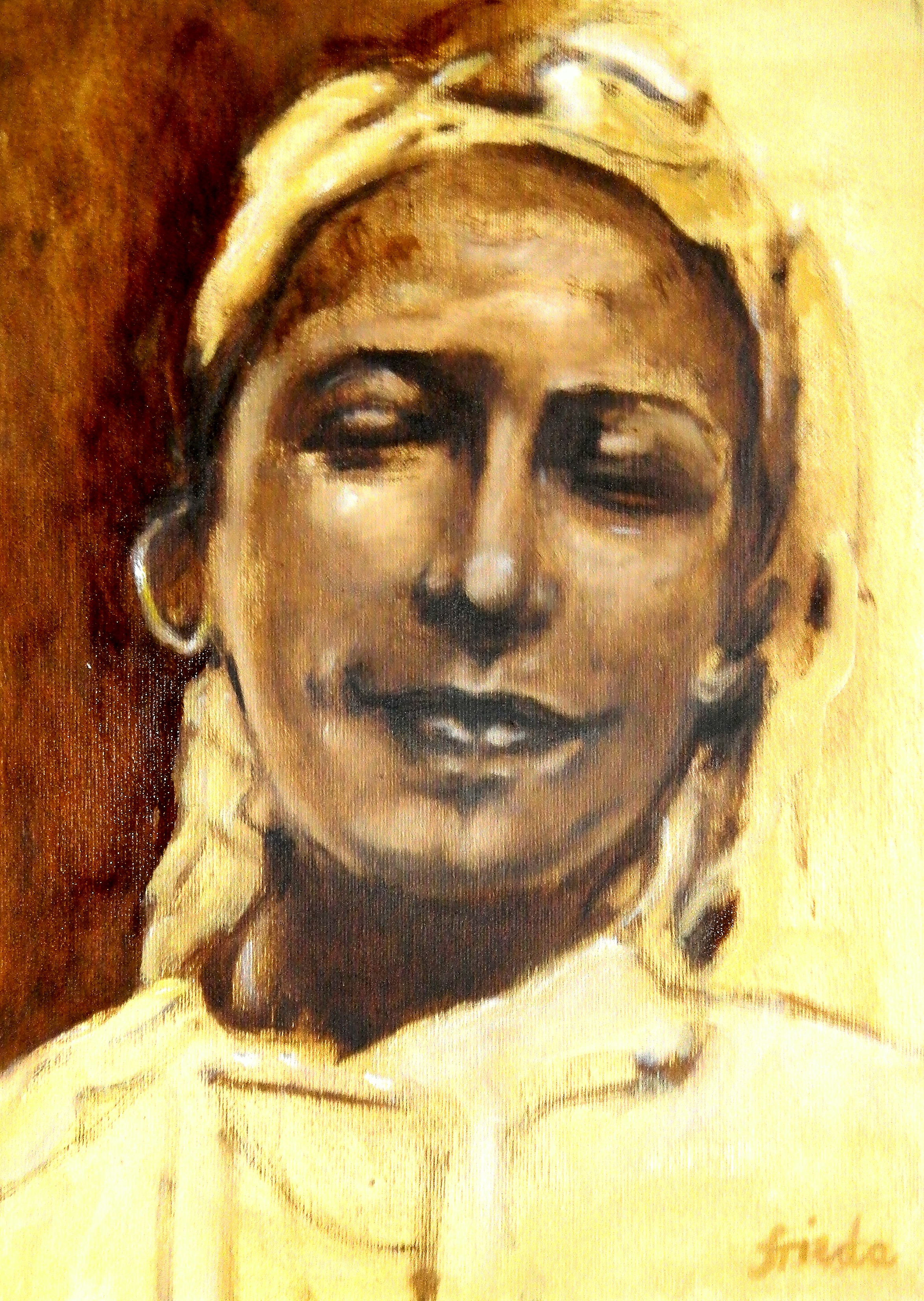Geel Vrouw Klein Bruin Gezicht Oil Canvas Olieverf On Femme Olio