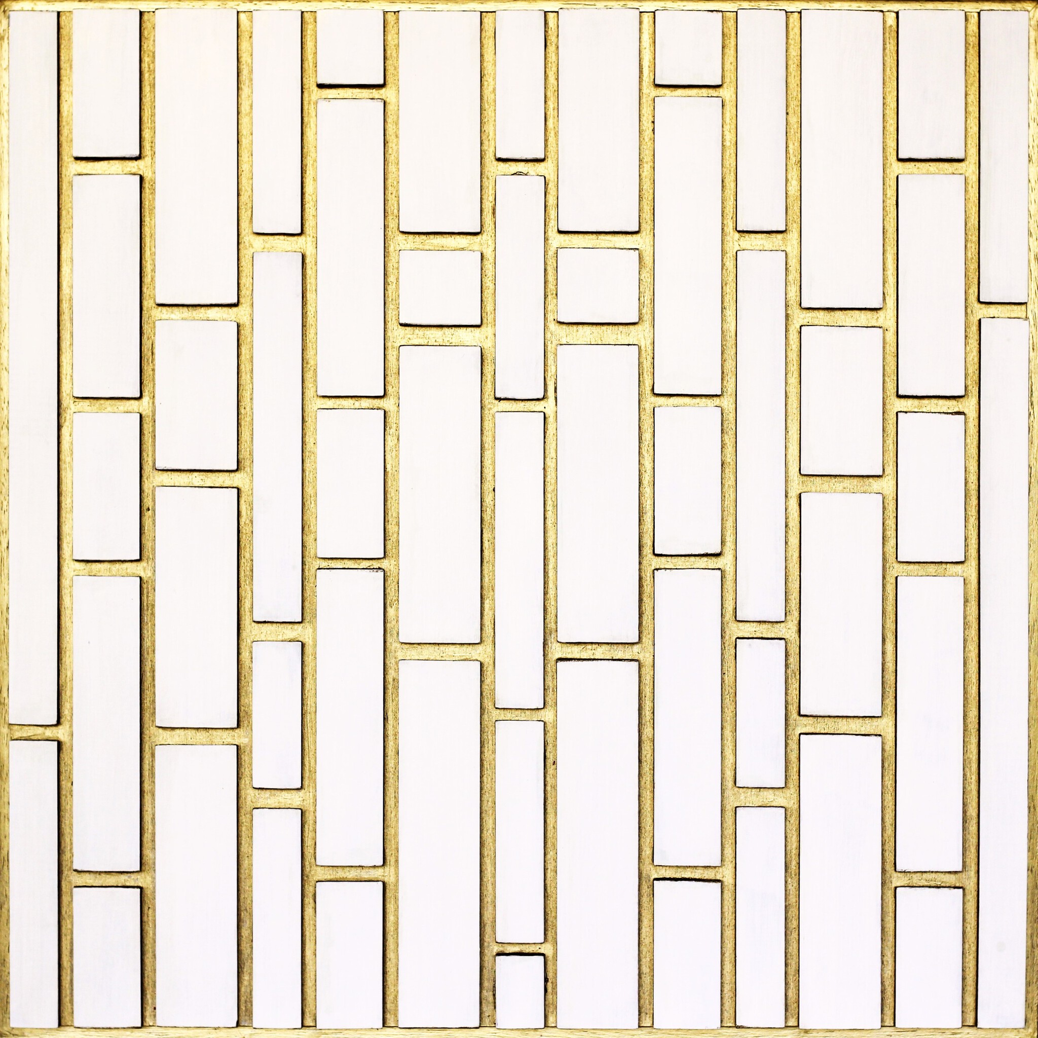 Compositie van hardhouten latwerk in gebroken wit met gouden lakverf in de tussenstroken.Voorzien van wit houten baklijst. Ook leverbaar als art print, gedrukt op 280 grams archival art paper. 50 x 50 cm – 79 euro / 60 x 60 cm – 95 euro / 70 x 70 cm – 110 euro / 80 x 80 cm – 130 euro / 90 x 90 cm – 160 euro / 100 x 100 cm – 180 euro Meer info ? Tel: 0031611755725 – Email: henkbroeke.hb@gmail.com