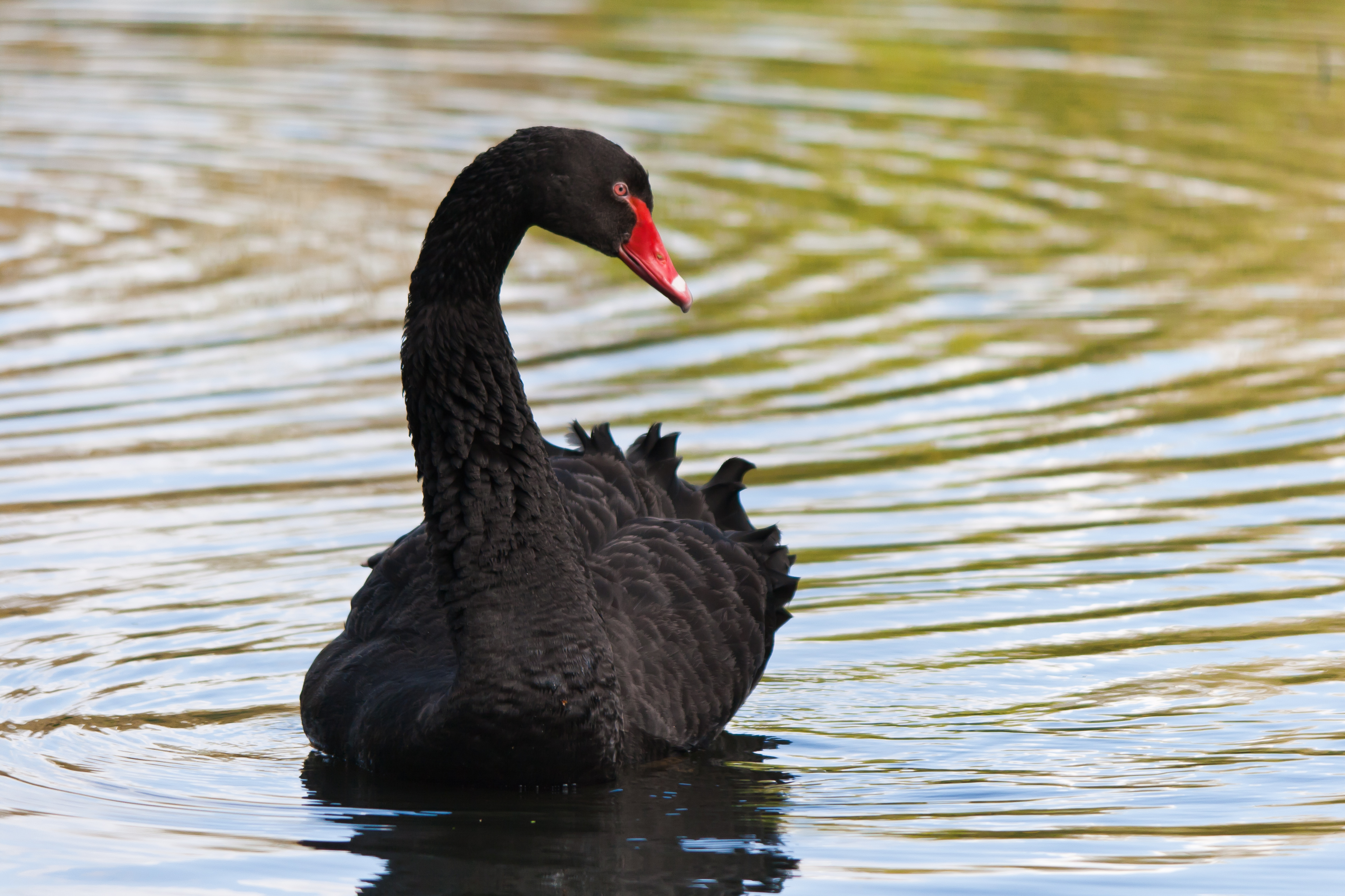 Zwarte zwaan met rode snavel