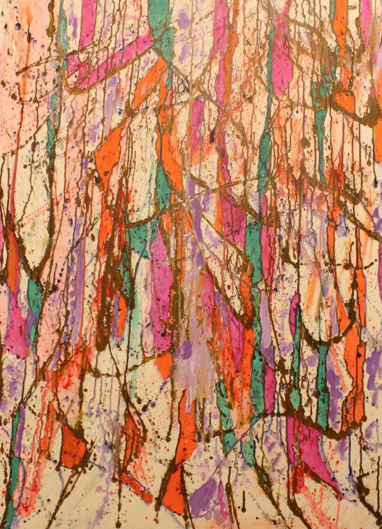 neuronen geel oranje acrylic en ecoline