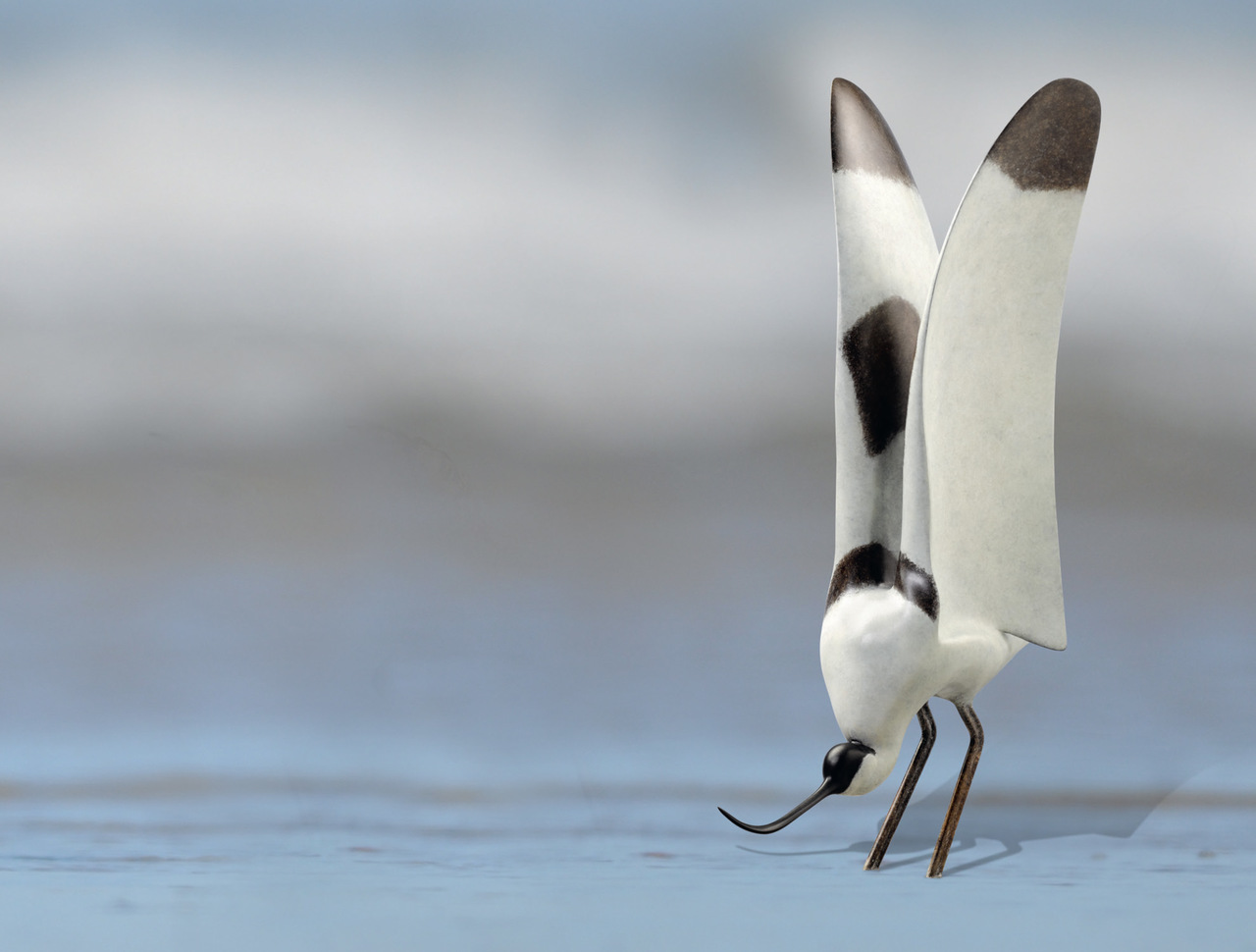 Kluut, in brons gegoten en gepatineerd