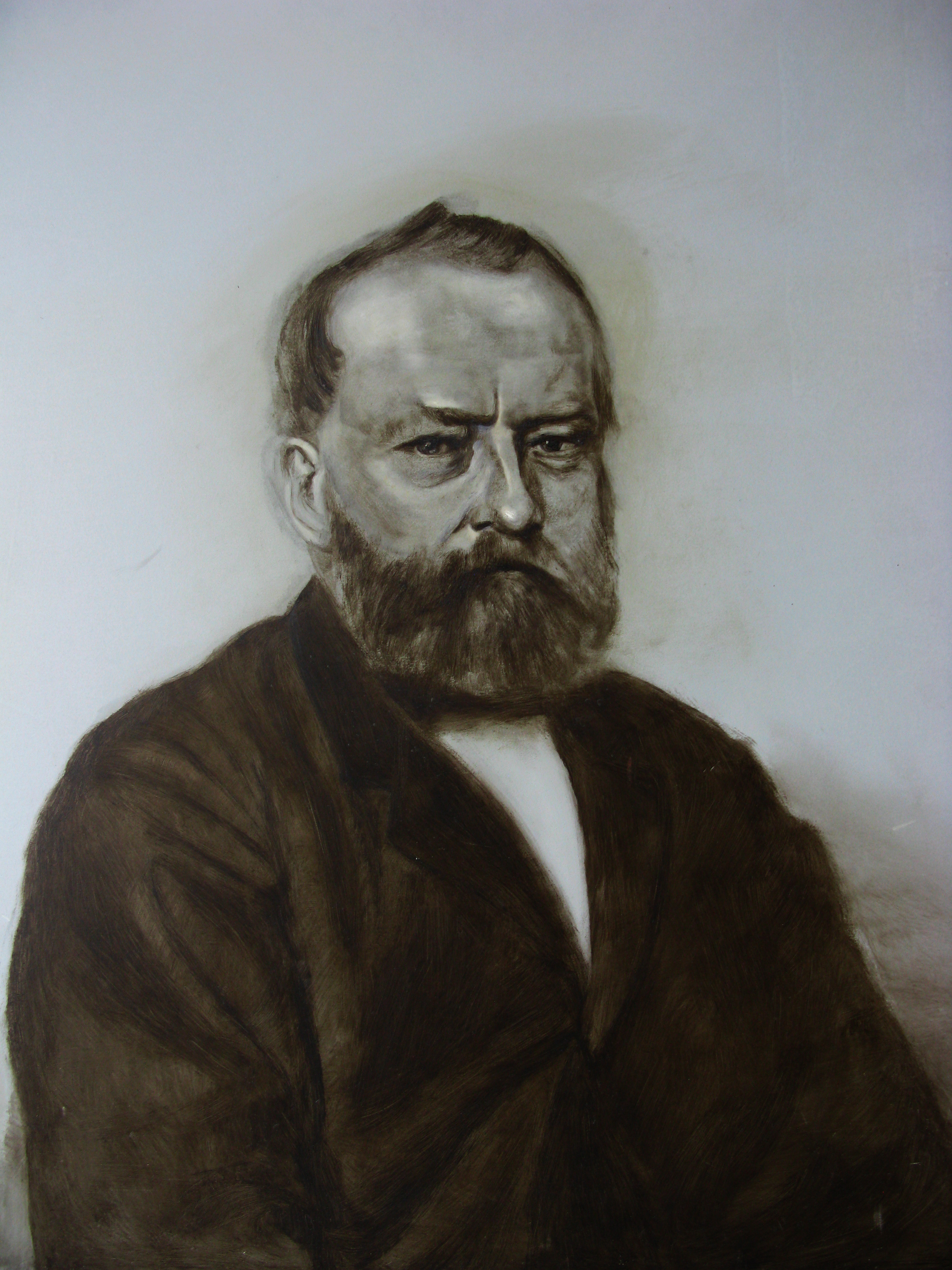 Portret van de Landschapschilder Cornelis Springer, onderschildering in sepia en wit.