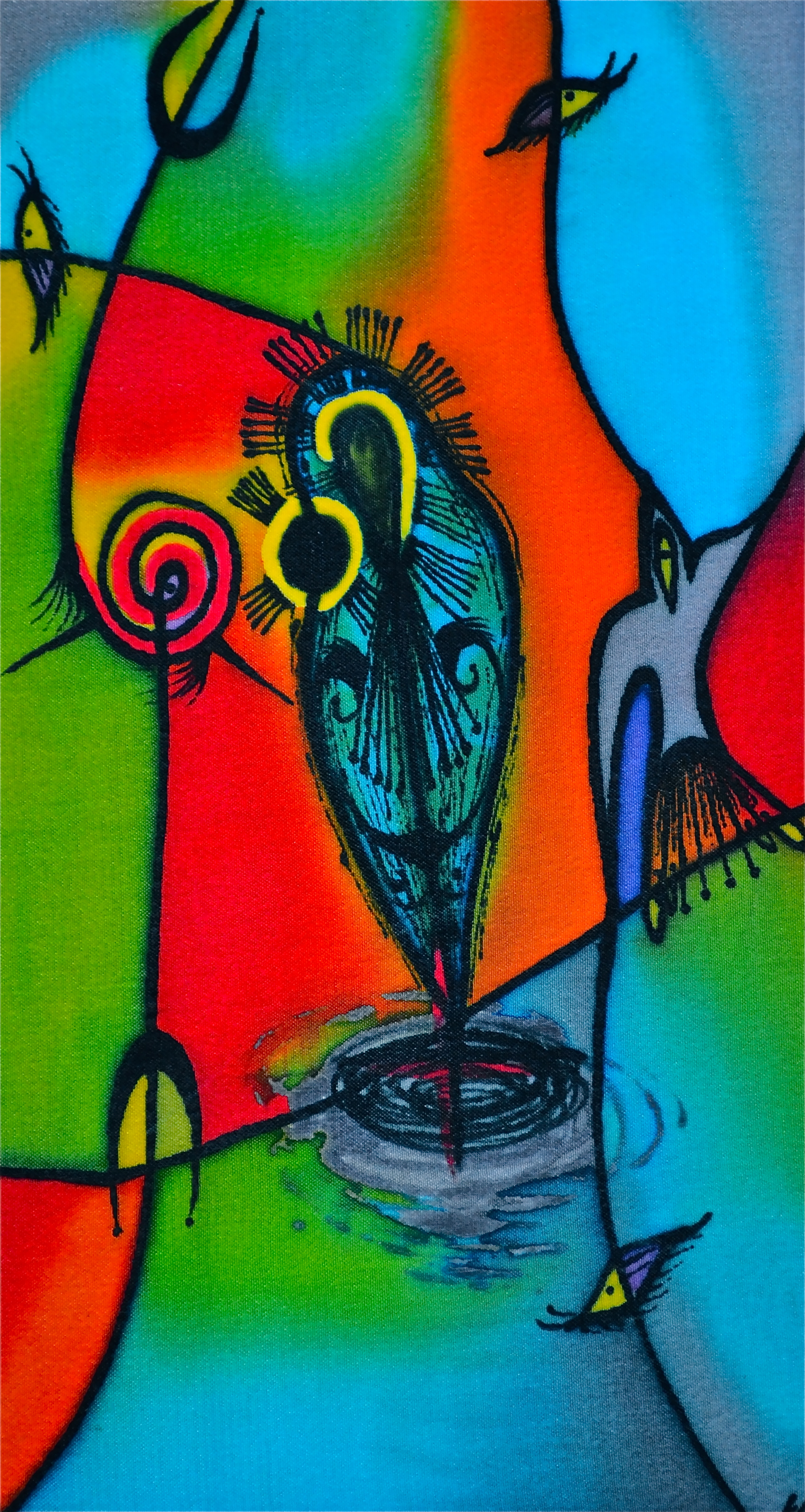 The mother archetype uit "Over Dromen en Herinneringen". Inkt op zijde schilderij. De schilderij is ingelijst, passé-Partout (wit)en een lijst(wit). Te bezichtigen bij Galerie Haamstede, Noordstraat 43, in Burg Haamstede ;Tel. 0111-652580 VERKOCHT.